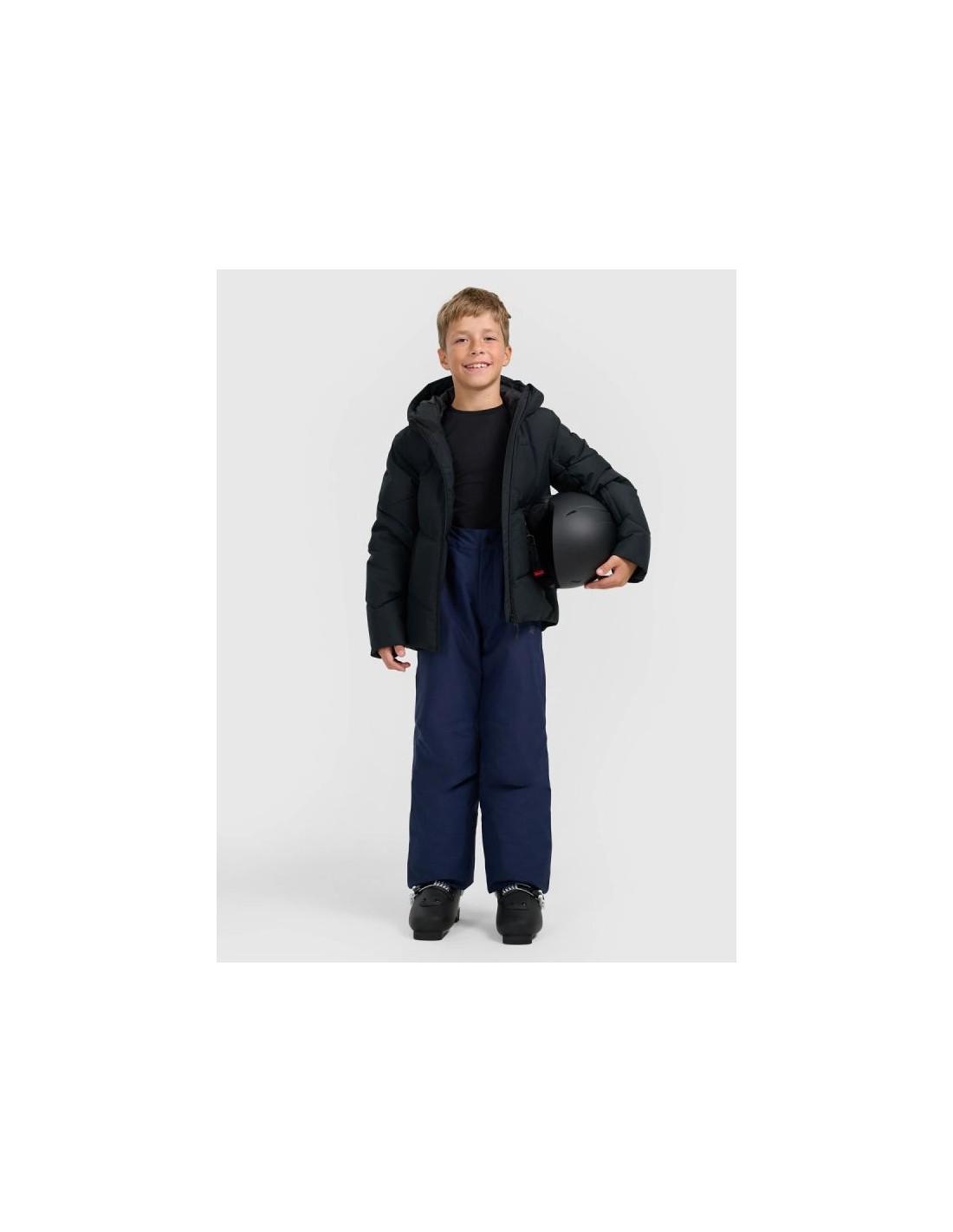 These boys' ski pants with a NeoDry 5000/3000 membrane offer reliable support during winter activities on the slopes. They provide effective moisture protection, thermal comfort, and complete freedom of movement, even during intense skiing. Durable ripstop fabric, polyester insulation, and a well-thought-out design make these pants perfect for both learning to ski and all-day winter adventures. NeoDry 5000/3000 membrane – protection against light rain, breathability support All seams are taped – increased moisture resistance Hydrophobic impregnation – material resistant to water absorption Rip-stop material – high tear resistance Polyester insulation – warmth without unnecessary weight Inner snow gaiters – effective protection against snow Internal reinforcements – greater durability in critical areas Pre-shaped knees – better fit and freedom of movement Adjustable Velcro strap + zipper, Velcro and snap closure Detachable, adjustable shoulder straps – stable fit 2 side zippered pockets – for small items Side leg zippers – easy to put on over ski boots Smooth lining – comfort of use Reflective details – better visibility after dark Regular fit, mid-rise waist, and full leg length for all-day comfort