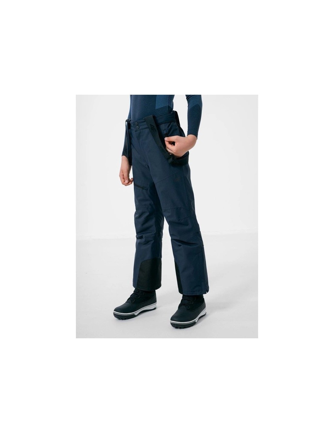 The HJZ22 JSPMN002 4F boys' ski pants will allow active young people to fully enjoy the benefits of winter. The pants also provide the desired thermal comfort, thanks to synthetic insulation . The back is raised and lined with soft tricot , which additionally protects the lumbar region. The pants have suspenders that prevent the fabric from shifting. Pre-shaped knees allow for freedom of movement. You can be sure that the pants are durable and that they are protected in sensitive areas. The pants can be used for skiing and snowboarding. The material with a NeoDry membrane is waterproof , breathable , and windproof . The fabric is sealed with taped seams, preventing moisture from getting inside. Another advantage is the snow gaiter , so you don't have to worry about moisture and snow getting inside your clothes.