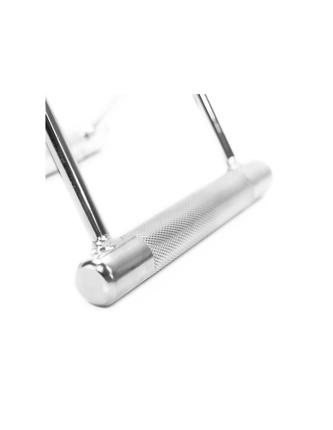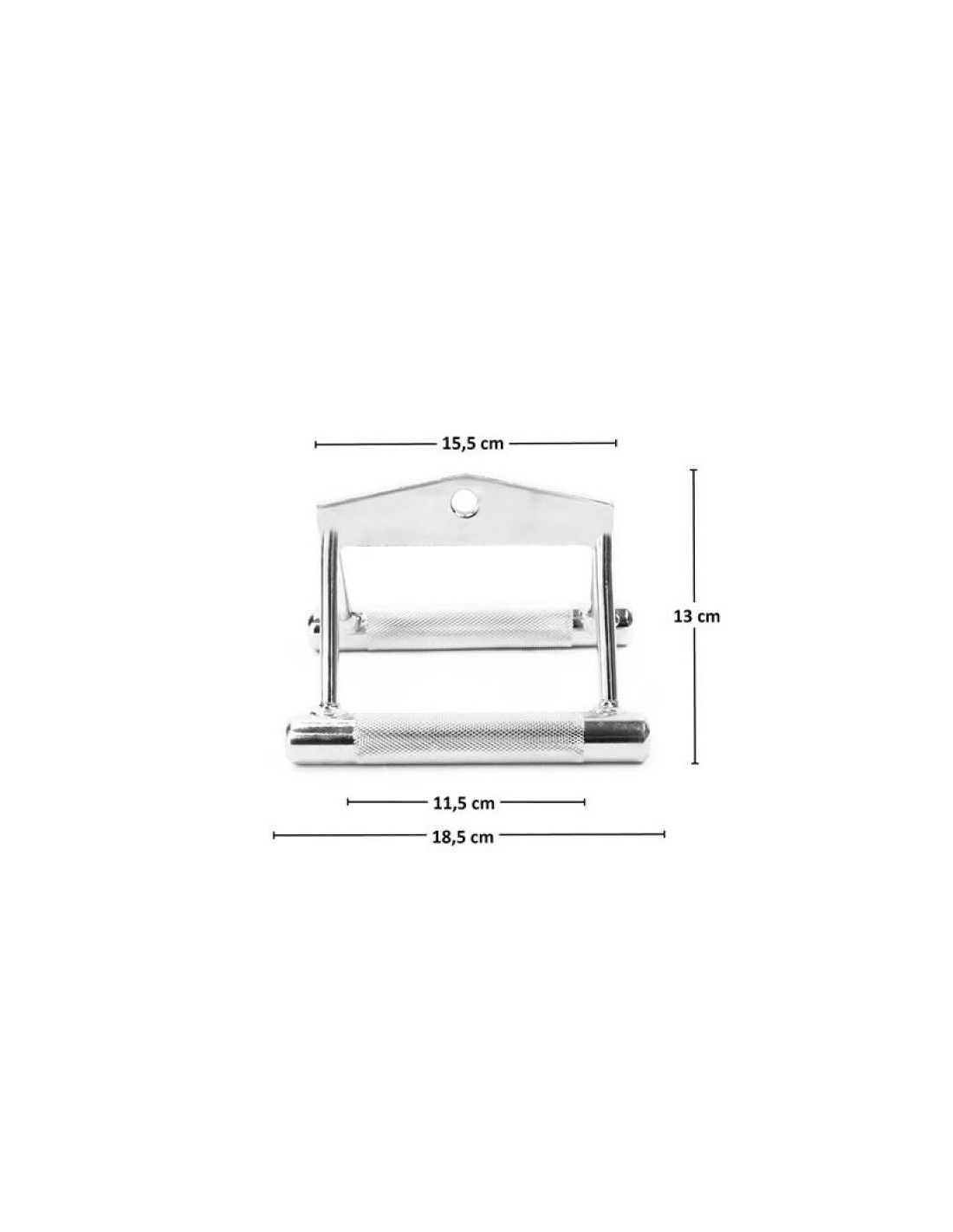 Η τριγωνική κατασκευή της λαβής αποτελεί εγγύηση για την τέλεια τοποθέτηση των χεριών και την επιβολή της σωστής κίνησης κατά τη διάρκεια της άσκησης. Η ατσάλινη, τραχιά λαβή παρέχει σταθερό κράτημα και εμποδίζει το σκεύος να γλιστρήσει από το χέρι, ενώ απαιτεί από εμάς πιο δυνατό κράτημα. Χάρη σε αυτό, εργαζόμαστε επίσης για την ανάπτυξη των μυών του αντιβραχίου. Η όχι πολύ μεγάλη απόσταση της λαβής διευκολύνει τη διατήρηση της σωστής διαδρομής της κίνησης, δηλαδή τη διατήρηση των αγκώνων κοντά στο σώμα. Κατασκευασμένο από χάλυβα υψηλής ποιότητας σας επιτρέπει να προπονείστε με σημαντικό φορτίο.