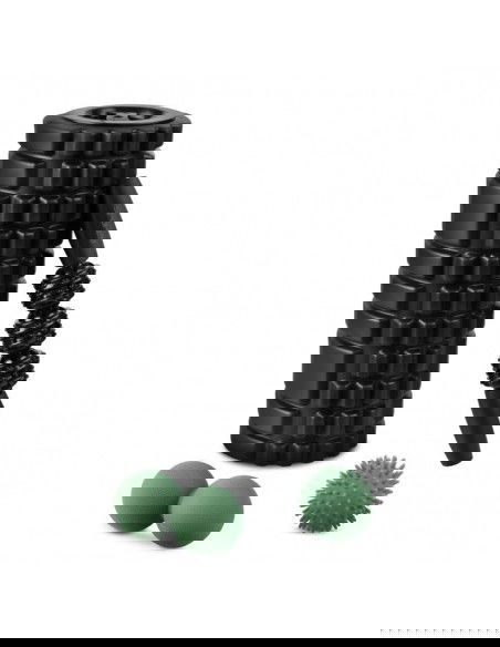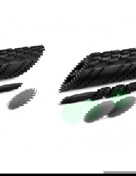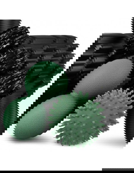 - Σετ μασάζ που αποτελείται από ένα μεγάλο ρολό με προεξοχές, μια διπλή μπάλα, μια μπάλα "σκαντζόχοιρου" και ένα ρολό "ραβδί" με προεξοχές.