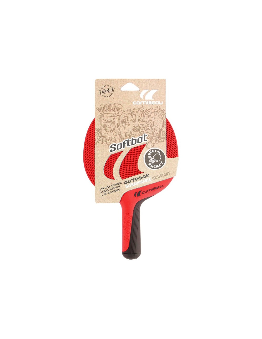 Νυχτερίδες επιτραπέζιας αντισφαίρισης SOFTBAT 454707 κόκκινοΠαρουσιάζουμε τα πρώτα οικολογικά ρόπαλα επιτραπέζιας αντισφαίρισης στον κόσμο για εξωτερική χρήση.Τα υλικά που χρησιμοποιήθηκαν για την παραγωγή των ρακετών SOFTBAT προέρχονται από την ανακύκλωση και τη διαδικασία ανάκτησης βαμβακερών και πολυεστερικών υφασμάτων από ρούχα από πρώην συλλογές της γαλλικής μάρκας ρούχων ARMOR LUX. Χάρη σε αυτό, η ρακέτα SOFTBAT είναι η πρώτη ECO ρακέτα στην αγορά! Εκτός από την οικολογική κατασκευή και το σχεδιασμό, η ρακέτα SOFTBAT χαρακτηρίζεται από αυξημένη αντοχή σε κραδασμούς και χτυπήματα, είναι ανθεκτική στις ακτίνες UV και στην υγρασία (βροχή, χιόνι).Οι ρακέτες πωλούνται μεμονωμένα και σε σετ των δύο και τεσσάρων τεμαχίων, ώστε να υπάρχει μια ρακέτα για οποιονδήποτε από την οικογένεια ή τους φίλους μας. Η ρακέτα είναι ιδανική για αρχάριους και παίκτες αναψυχής, καθώς και για προπόνηση.Προδιαγραφές: