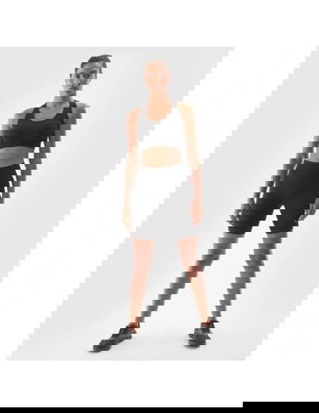 4F Women's Sports Leggings - Comfort and Performance in Every Move 4F women's sports leggings are the perfect choice for active women who value comfort, functionality, and modern technology. Made of high-quality synthetic material, they offer excellent durability and ease of care. Thanks to the addition of elastane (9%), the leggings perfectly fit the body, ensuring freedom of movement and comfort during training. The most important features of leggings: Quick-drying 4FDry fibers – help wick moisture away from the body, keeping you dry and comfortable during intense exercise. Seamless construction – eliminates the risk of abrasions and irritation, making the leggings comfortable even after prolonged use. Elastic waistband – no adjustments, fits comfortably to the body without any pressure. Slim fit – fits the body, emphasizing its shapes, and the above-the-knee cycling style provides greater freedom of movement. Material – synthetic, elastic, flexible, slightly ribbed, making the leggings pleasant to the touch and comfortable to wear. Uniform colors – easily adapts to various styles. Cut : slim, above-the-knee (cycling pants) Main material : Polyamide 90%, Elastane 9%, Polyester 1% These leggings are perfect for the gym, running, or other activities that require comfortable and functional clothing. They offer the perfect blend of flexibility, comfort, and modern technology to support physical activity at every stage of your workout.