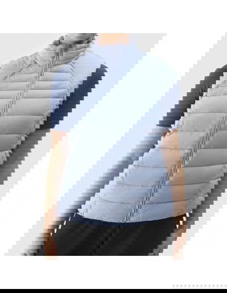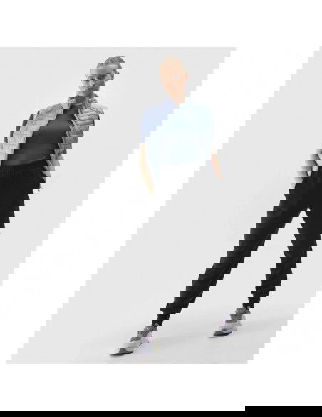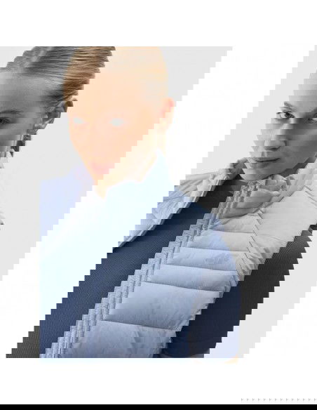 This women's vest is filled with recycled synthetic down, features a stand-up collar, and a lightweight construction, making it suitable for everyday activities as well as warmer days transitioning from active to active. Its lightweight design means it's lightweight enough to be worn during exercise, while also providing an effective insulating layer, especially under waterproof jackets. It not only protects against the cold but also works well as a layering piece. Easy to put on and store, it has a slim fit that hugs the body and a regular hip length. cut: slim, which adapts to the silhouette size range: XS-XXL standard hip-length cut polyester, quilted lining low stand-up collar 2 open side pockets internal, unfastened pockets one-way main zipper with internal wind flap bottom with elastic band 100% recycled synthetic down filling provides adequate insulation properties even in humid conditions PARAMETERS: Filling: 100% recycled polyester A product intended for warmer days The low weight of the filling makes the jacket light and packable. Main material: Polyamide 100% Filling: Polyester 100% Lining: Polyester 100%