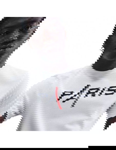 Το Nike PSG SS Tee HV4943100 είναι ένα ανδρικό μπλουζάκι με κοντά μανίκια, σε λευκό χρώμα, με το λογότυπο της ομάδας Paris Saint-Germain στο μπροστινό μέρος.