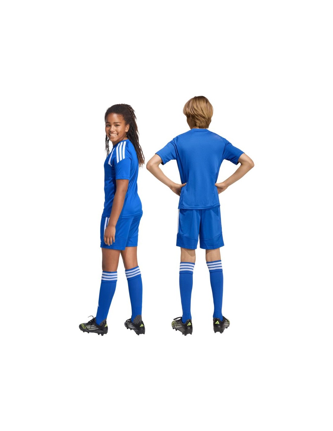 adidas Tiro 26 League Blue Shorts KA8816. These adidas kids' shorts are perfect for crucial matches. Part of the Tiro line, they feature an elastic waistband with an internal drawcord. Climacool technology. Side stripes. Small embroidered logo. Material: 100% recycled polyester.