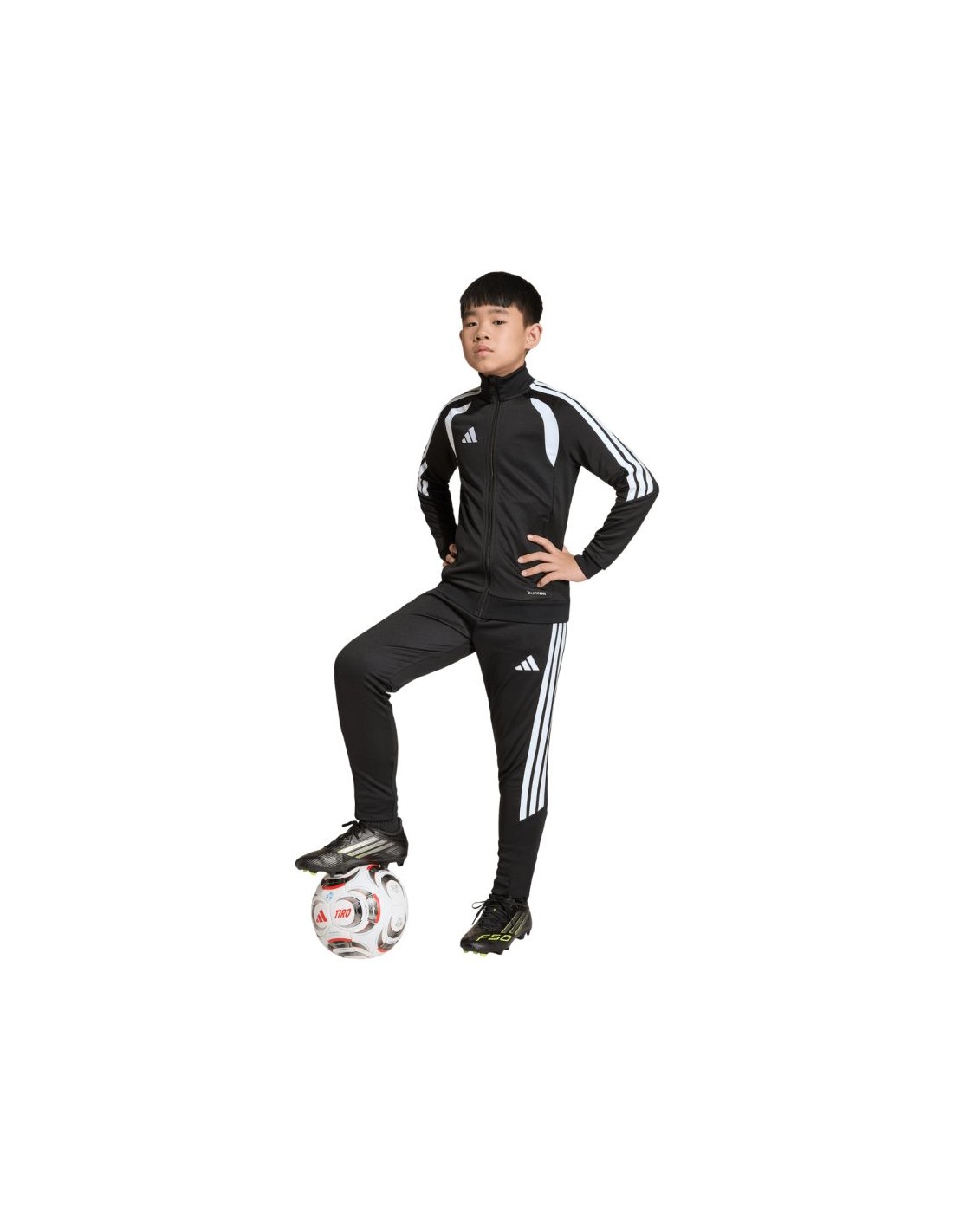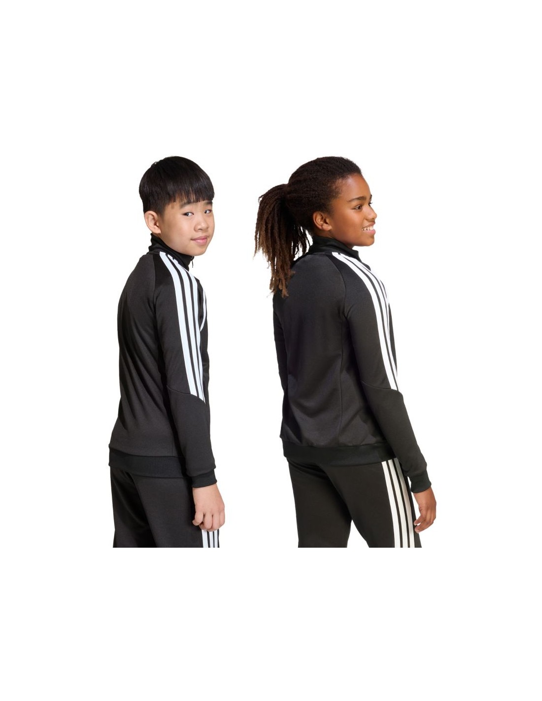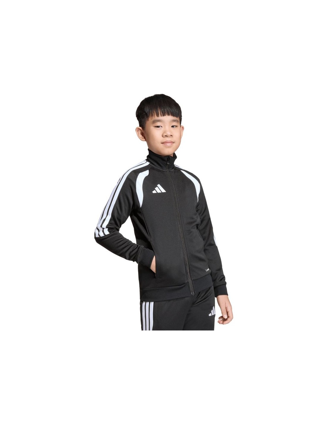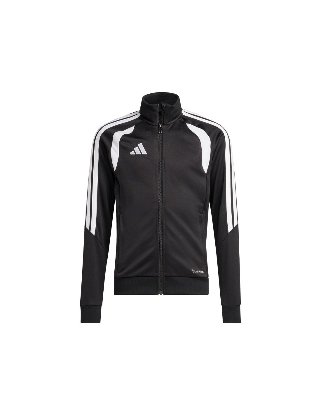 adidas Tiro 26 League Training Hoodie for Kids, Black JY7202. This adidas football hoodie is perfect for training. Stand-up collar. Full-length zipper. Slim fit. Climacool technology wicks and disperses sweat. Stripes on the sleeves. Subtle logo. Quick-drying fibers. Material: 100% recycled polyester
