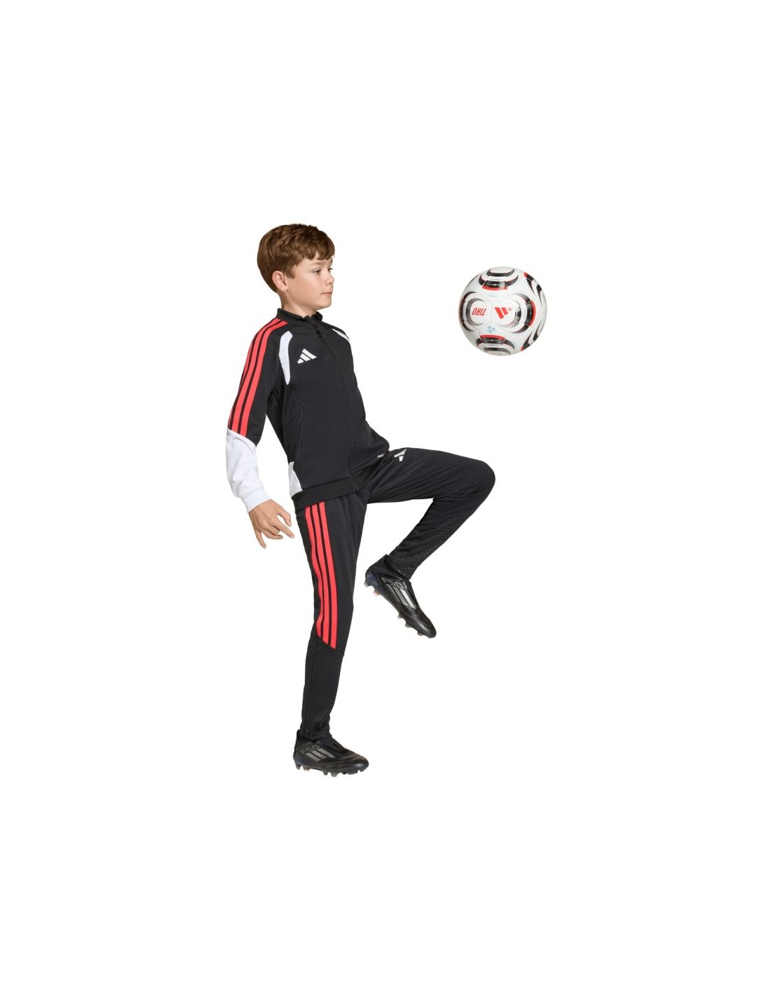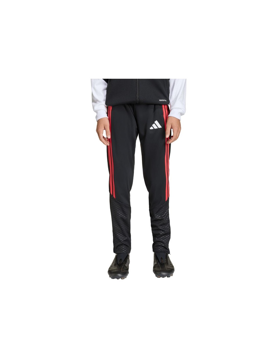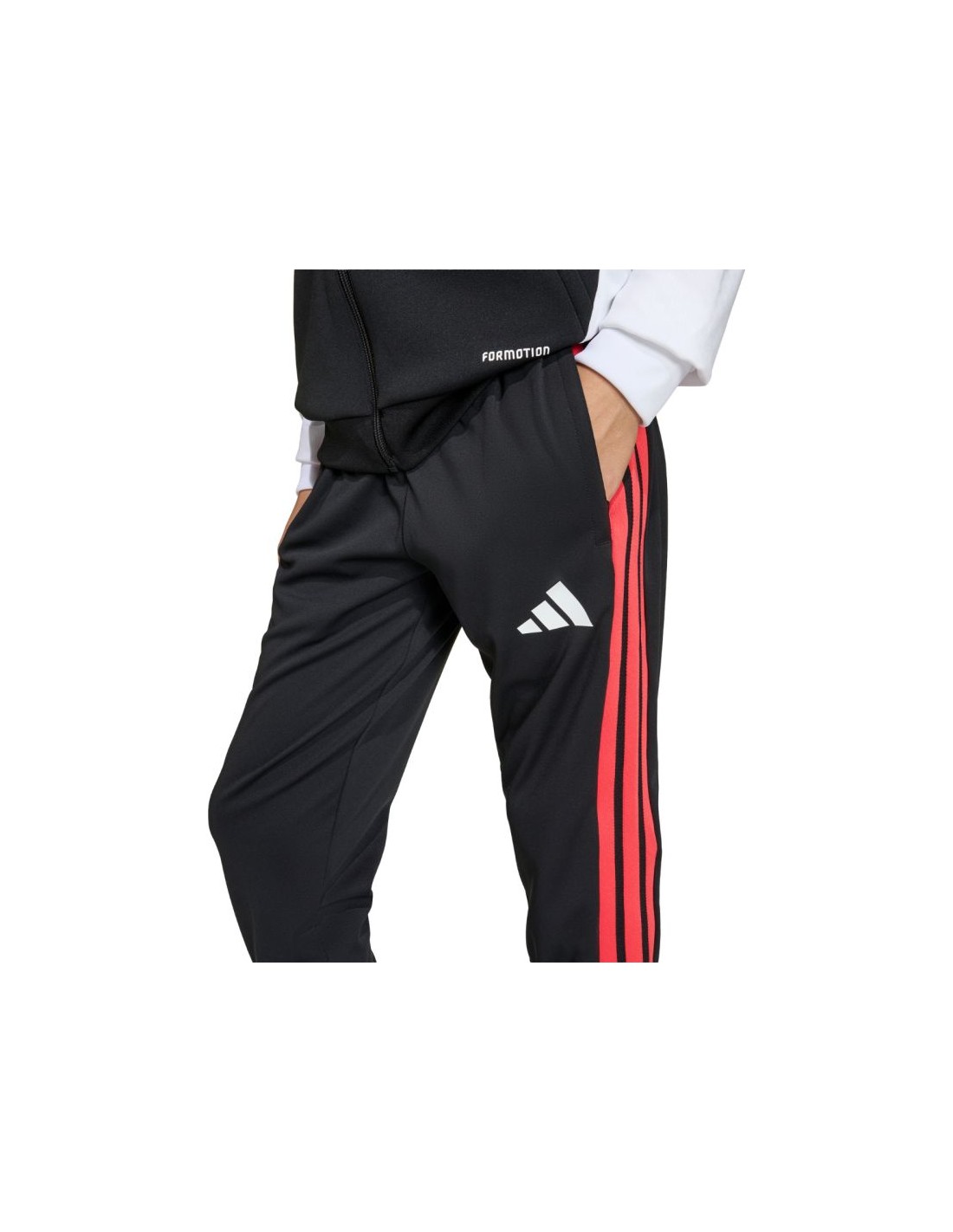 adidas Tiro 26 Competition Training Pants for Kids, Black and Red KA5136. These adidas pants are perfect for training. Made from quick-drying recycled fibers, these Tiro pants feature a slim fit with an elastic waistband and drawstring. Zippered side pockets and zippered leg openings. Formotion technology allows for unrestricted movement. Material: 100% recycled polyester.