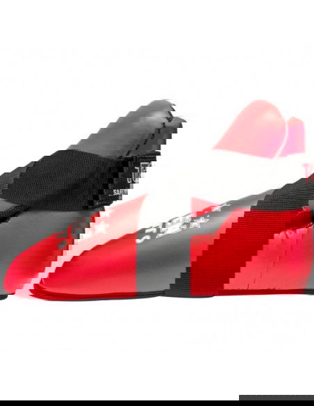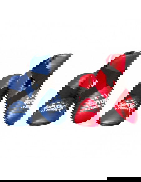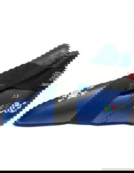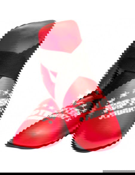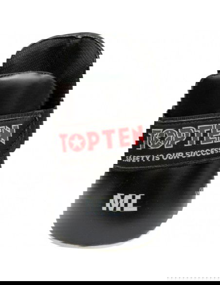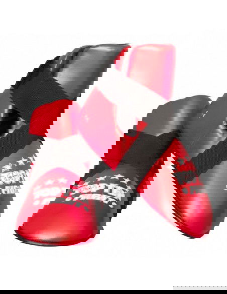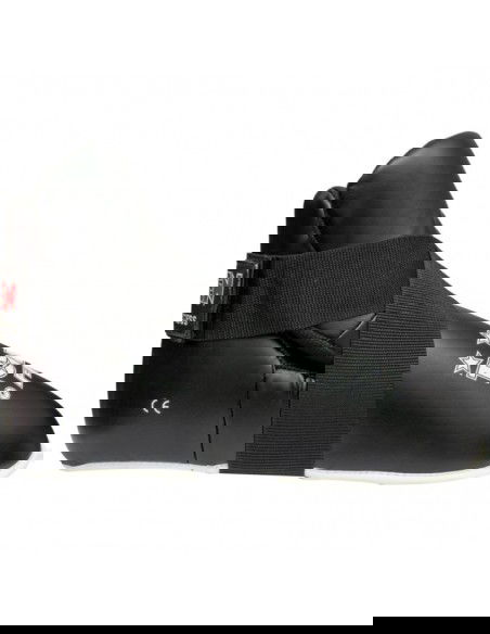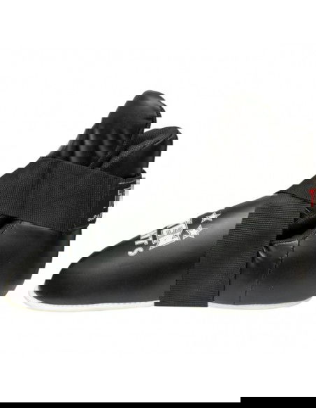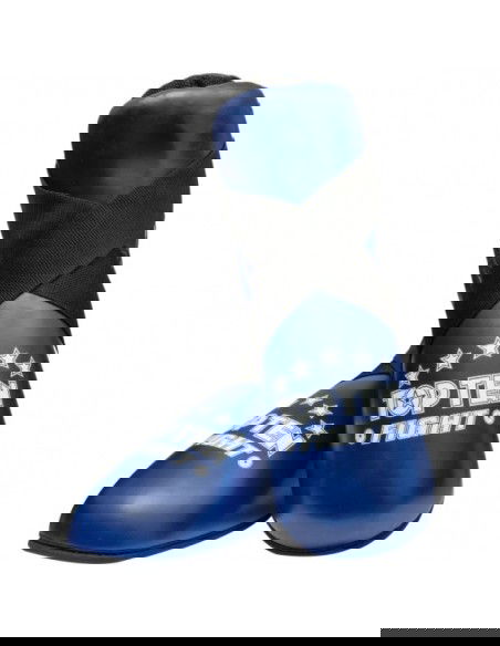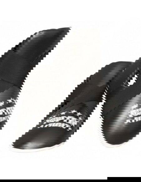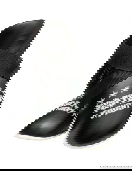 TOP TEN, μοντέλο "FIGHT", κατασκευασμένο από συνθετικό δέρμα υψηλής ποιότητας. Ειδικό γέμισμα από αφρό PPS προστατεύει από τραυματισμούς στις καμάρες και στον αστράγαλο. Κλείσιμο με βέλκρο. Είναι εγκεκριμένα από την WAKO.