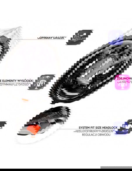 - Η απλή και γρήγορη προσαρμογή του μεγέθους είναι δυνατή με τη χρήση του συστήματος FIT SIZE, δηλαδή ενός δακτυλίου πολλαπλών σταδίων για την ομαλή ρύθμιση της περιφέρειας. Χρησιμοποιώντας το ένα χέρι, μπορείτε να το προσαρμόσετε στο κεφάλι σας σε λίγα δευτερόλεπτα χρησιμοποιώντας ένα μικρό κουμπί στο πίσω μέρος του κράνους.