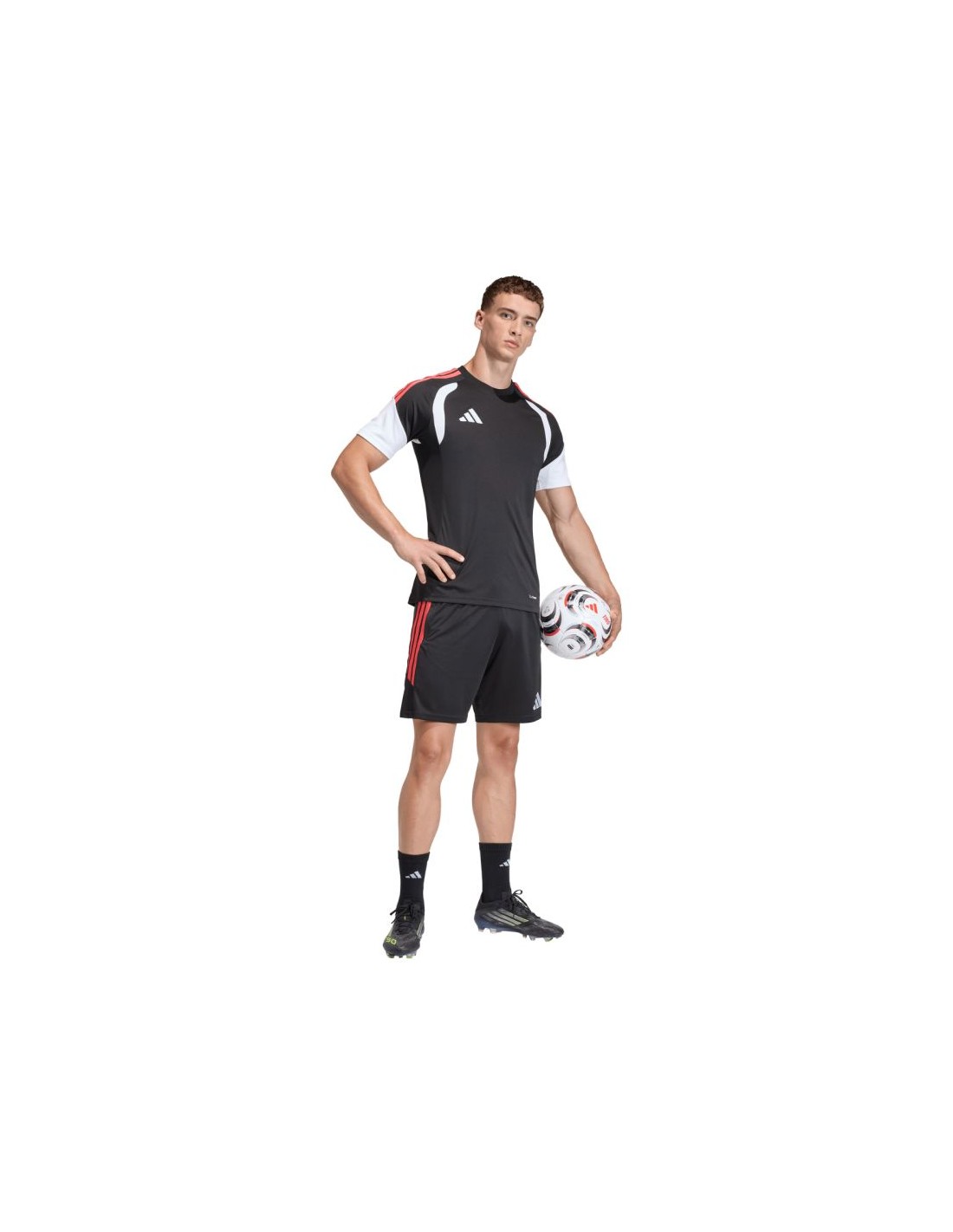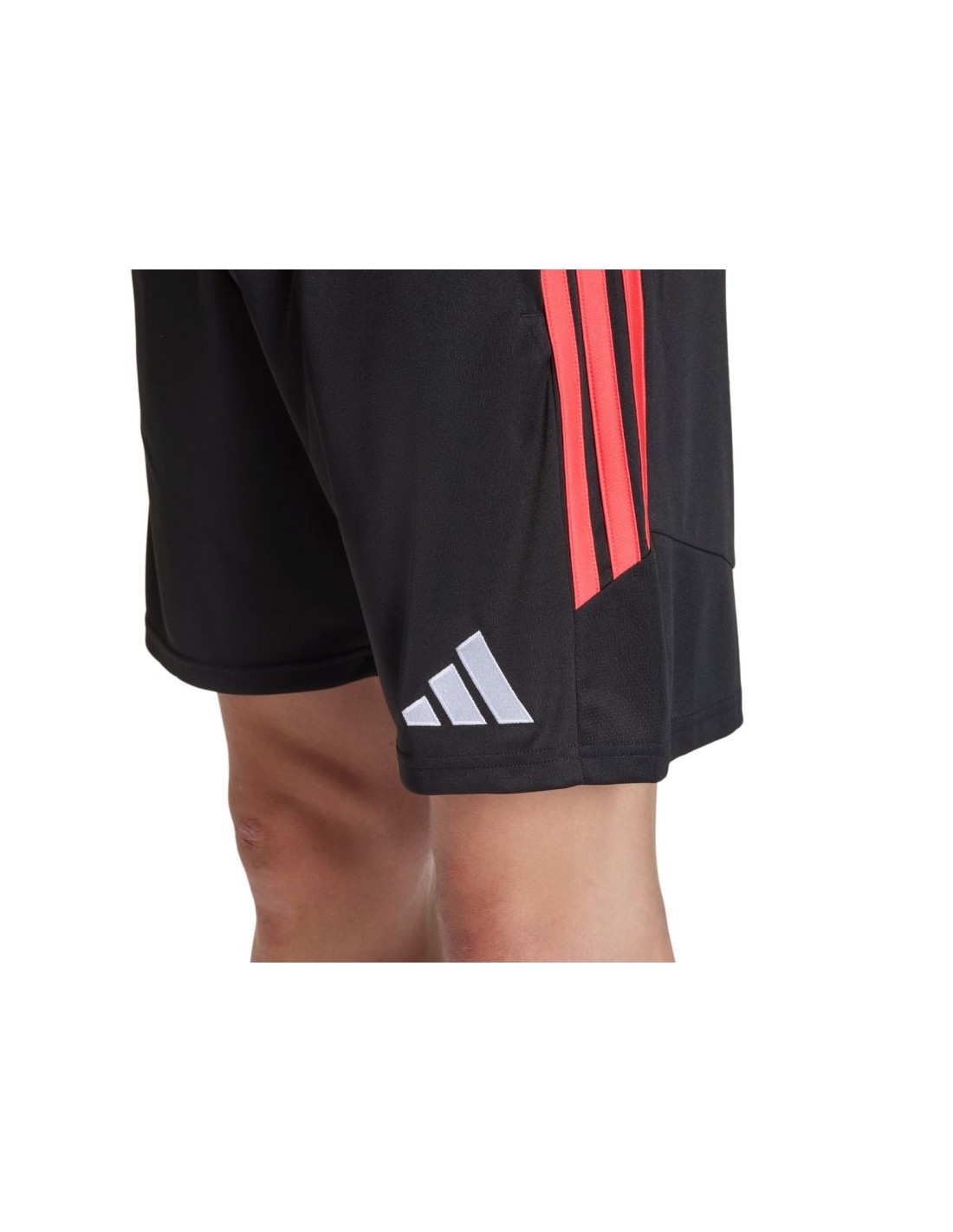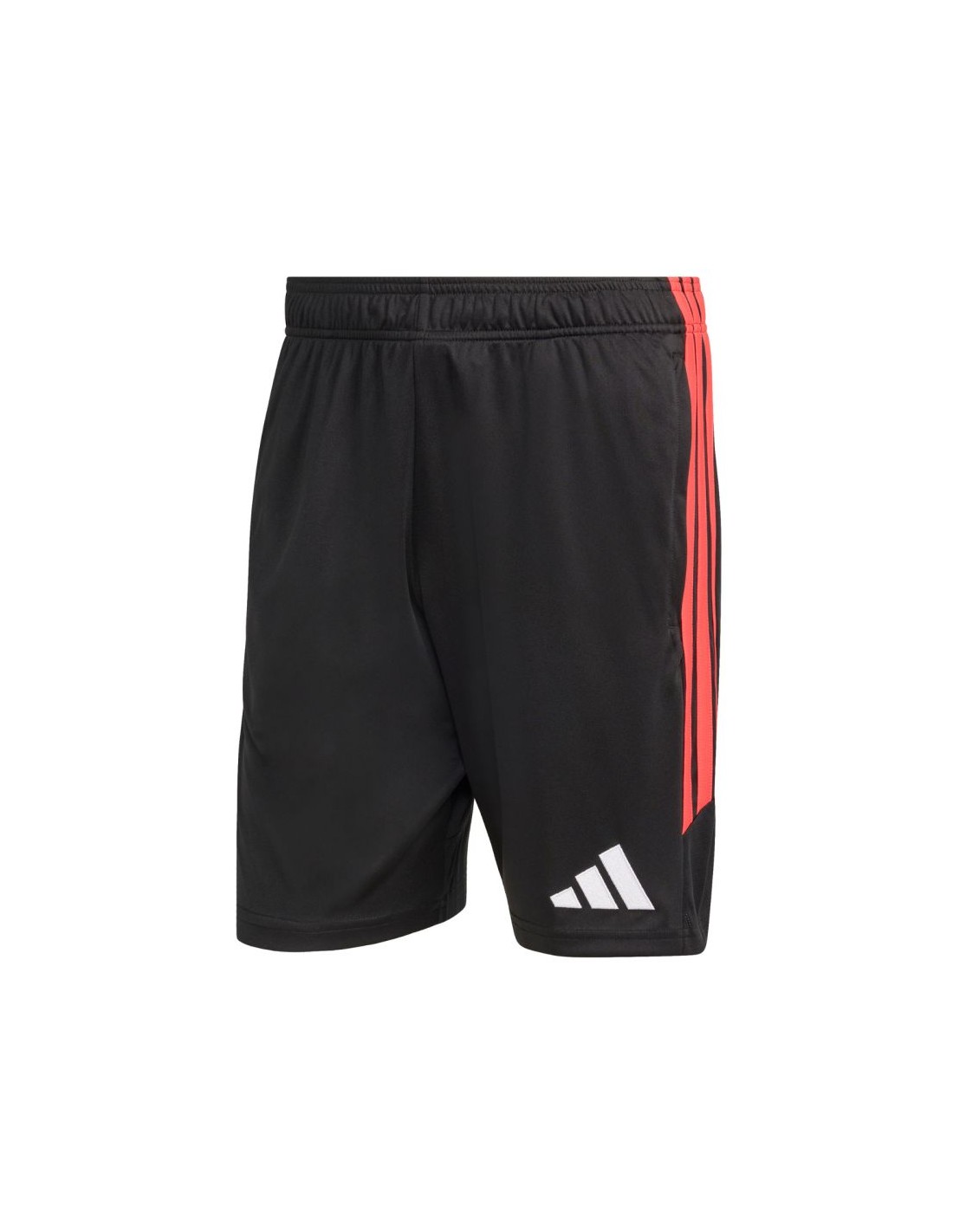adidas Tiro 26 League Training Shorts, Black and Red JY9716. These adidas men's shorts are perfect for the game. Part of the Tiro line, they feature a standard fit. They feature an elastic waistband with an internal drawcord. They feature Climacool technology and an interlock construction. They feature side stripes and a small embroidered logo. Material: 100% recycled polyester.