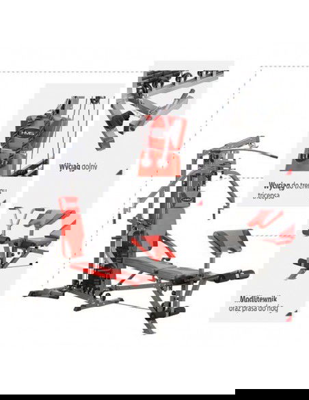 Ο εξοπλισμός επιτρέπει τη διαμόρφωση όλων των μυϊκών ομάδων: της ευρύτερης πλάτης, των θωρακικών, των τραπεζοειδών, της στάσης, των γλουτών, των αντιβραχιόνων, των δελτοειδών, των τρικέφαλων, ενώ σας επιτρέπει επίσης να γυμνάσετε τα πόδια σας.