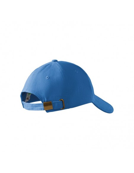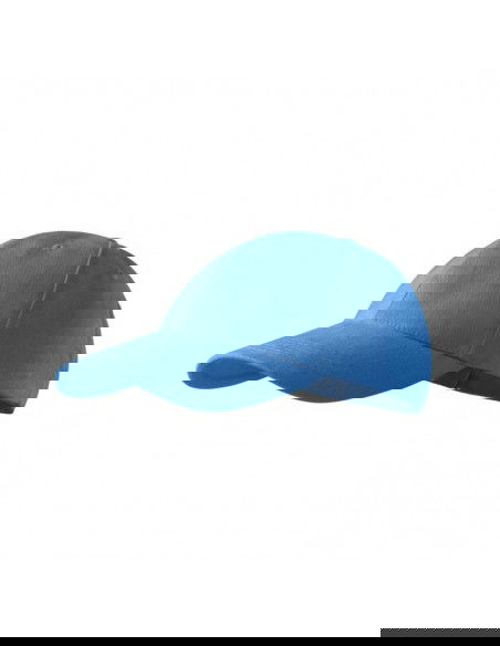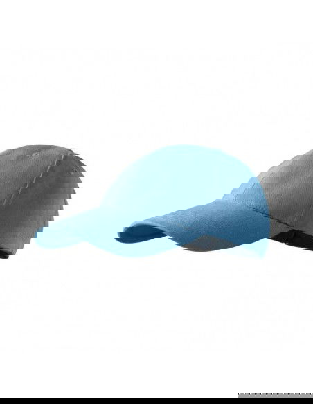 Brushed twill, 100% cotton, 6-panel cut, 2 front panels connected, embroidered, slightly curved peak, embroidered ventilation holes, sweatband, size adjustable with brass clip