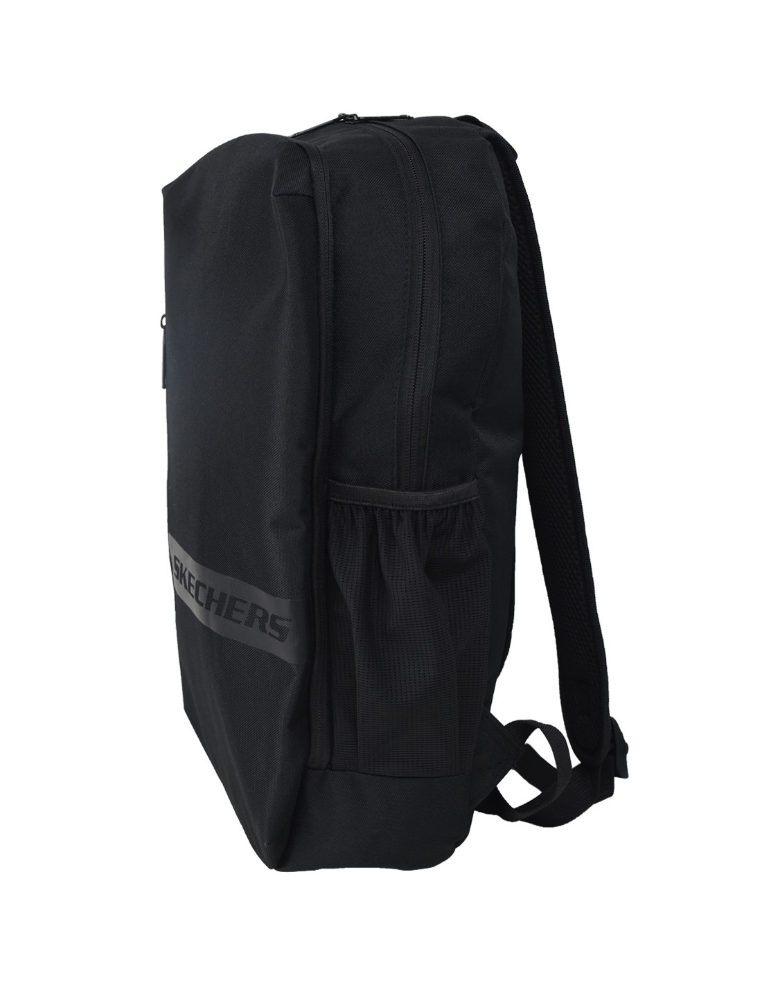 Unisex σακίδιο πλάτης της εταιρείας Skechers, κατασκευασμένο από ύφασμα σε μαύρο χρώμα.