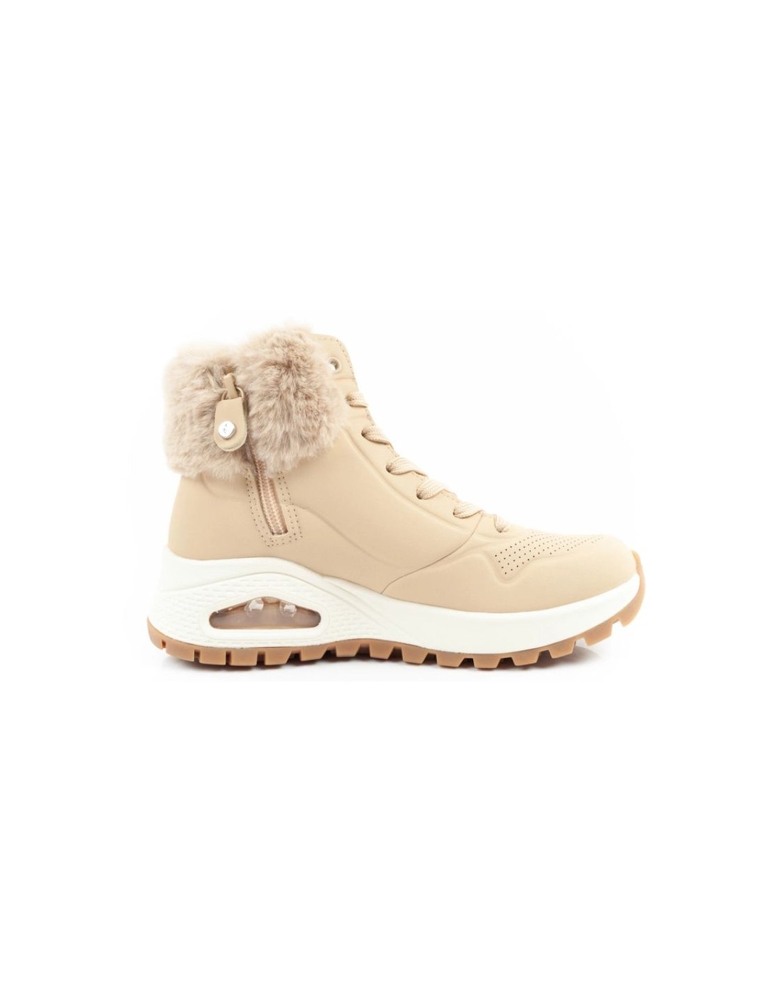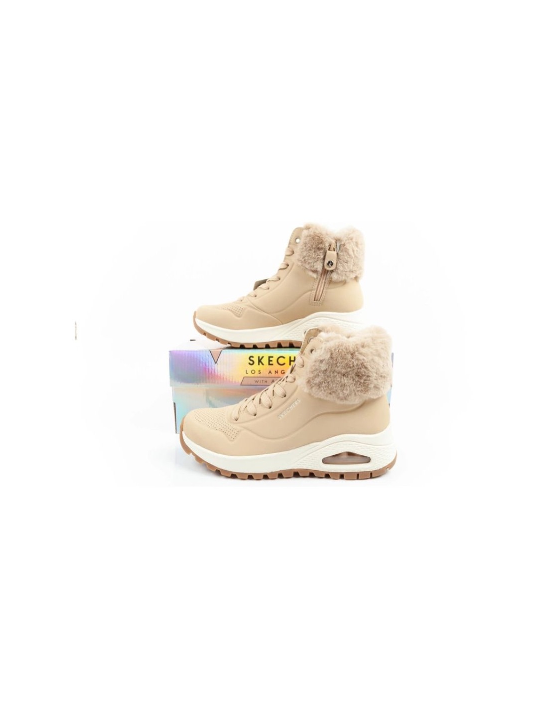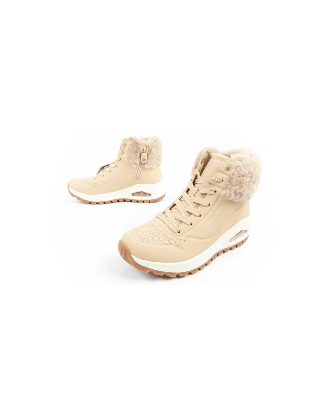 Skechers Uno Rugged Women's Insulated Winter Boots Brown Women's insulated sports shoes by Skechers. The upper is made of the highest quality smooth profiled Durabuck synthetic leather. The high, insulated collar adds charm to the styling. The interior of the shoe is lined with pleasant fleece. The zipper makes it easy to put on and take off the shoes. The classic lacing system ensures a perfect fit of the footwear to the foot. Fashionable and comfortable ankle boots from Skechers. Comfortable Skechers Air-Cooled Memory Foam insole. Midsole with visible Skech-Air cushioning. Non-slip, flexible outsole for traction. Perfect footwear for any autumn and winter styling.