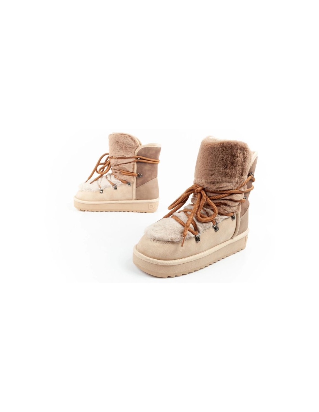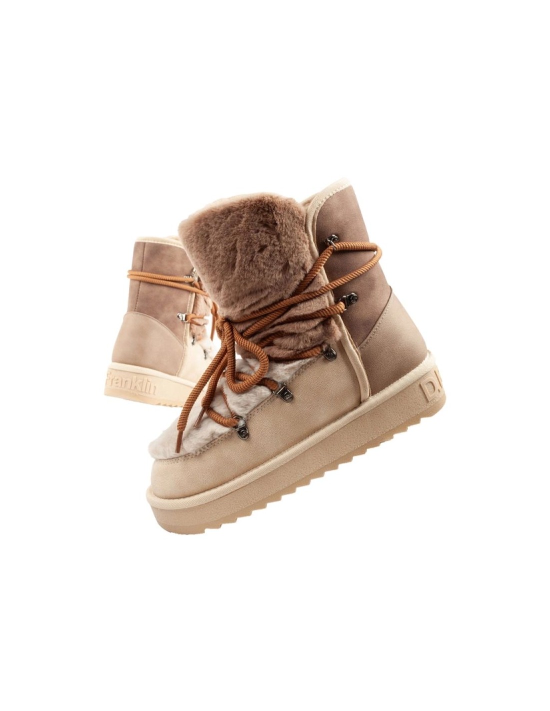 DFranklin women's winter snow boots fashionable fur lining brown beige high