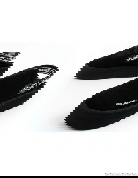 - Elastic strap fastening at the back with KARL LAGERFELD logo – can be worn as a slip-on or with heel support.