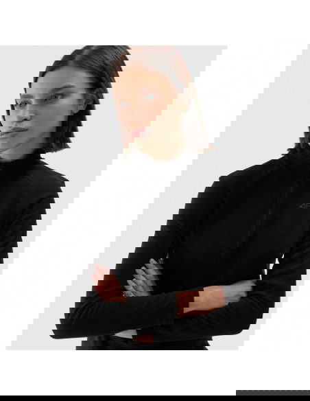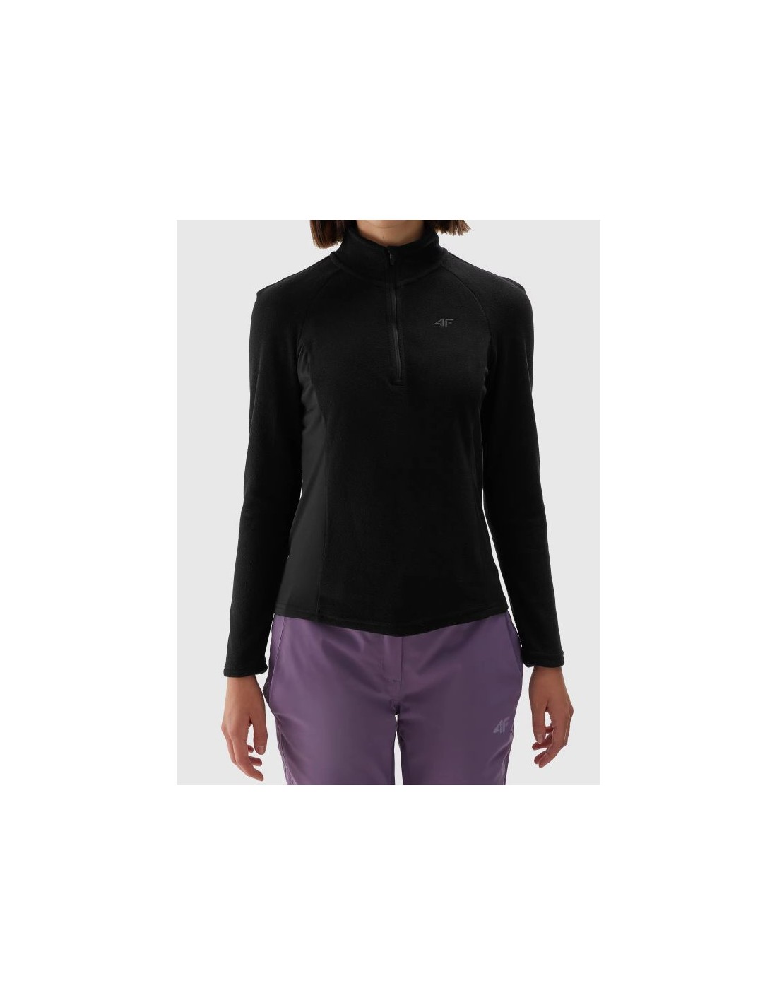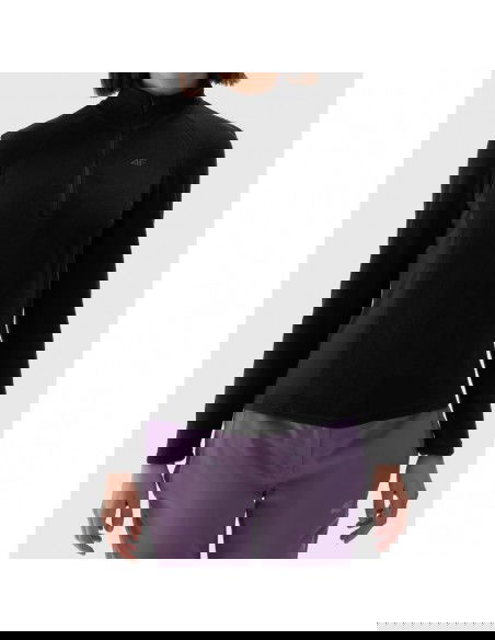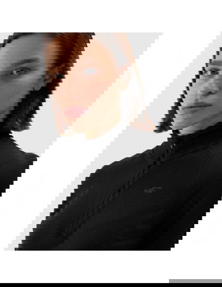 It works best as an insulating second layer , worn directly over a thermal shirt or under a jacket, especially on cool and cold days. It has a standard length that reaches to the hips. This warm thermal underwear is made of synthetic material, ensuring durability and easy care. This women's thermal sweatshirt with 4FWarm technology ensures thermal comfort and helps maintain a constant body temperature. It features a stand-up collar with a zipper closure and a zipper lock. size range: XS-3XL cut: slim, which adapts to the silhouette standard cut reaching to the hips made of synthetic material that ensures durability and is easy to care for color blocks two-layer fleece fabric, perfect as a second layer stand-up collar with zipper and zipper lock 4FWarm technology helps maintain a constant body temperature Additional material: Polyester 90%, Elastane 10% Main material: Polyester 100%