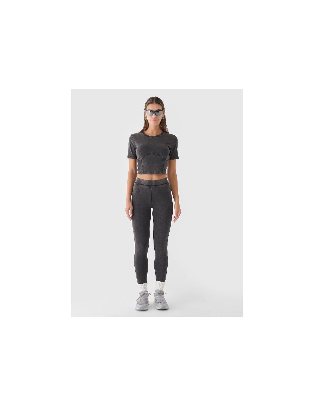 Women's knit leggings are perfect for both casual and everyday sporty outfits. These women's casual leggings feature a slim, fitted cut that hugs the body. The single jersey weave with a smooth, one-sided surface makes them flexible and comfortable to wear. They feature a high waist that stays in place and provides enhanced coverage, and full-length legs that fall below the ankle. These women's 4F leggings are made of 95% cotton, making the material soft, durable, and pleasant to the touch. Thanks to the addition of 5% elastane, they are stretchy and comfortably drape. They come without pockets. The elastic waistband is non-adjustable. An elastic waistband ensures a snug fit. high waist size range: XS-XL cut: slim, which adapts to the silhouette long legs above the ankle made of 95% cotton, making the material soft, durable and pleasant to the touch stretchy material thanks to the addition of elastane (5%) uniform colors that match many styles soft-touch single jersey fabric with a smooth surface without pockets non-adjustable belt waistband with elastic band Main material: Cotton 95%, Elastane 5%