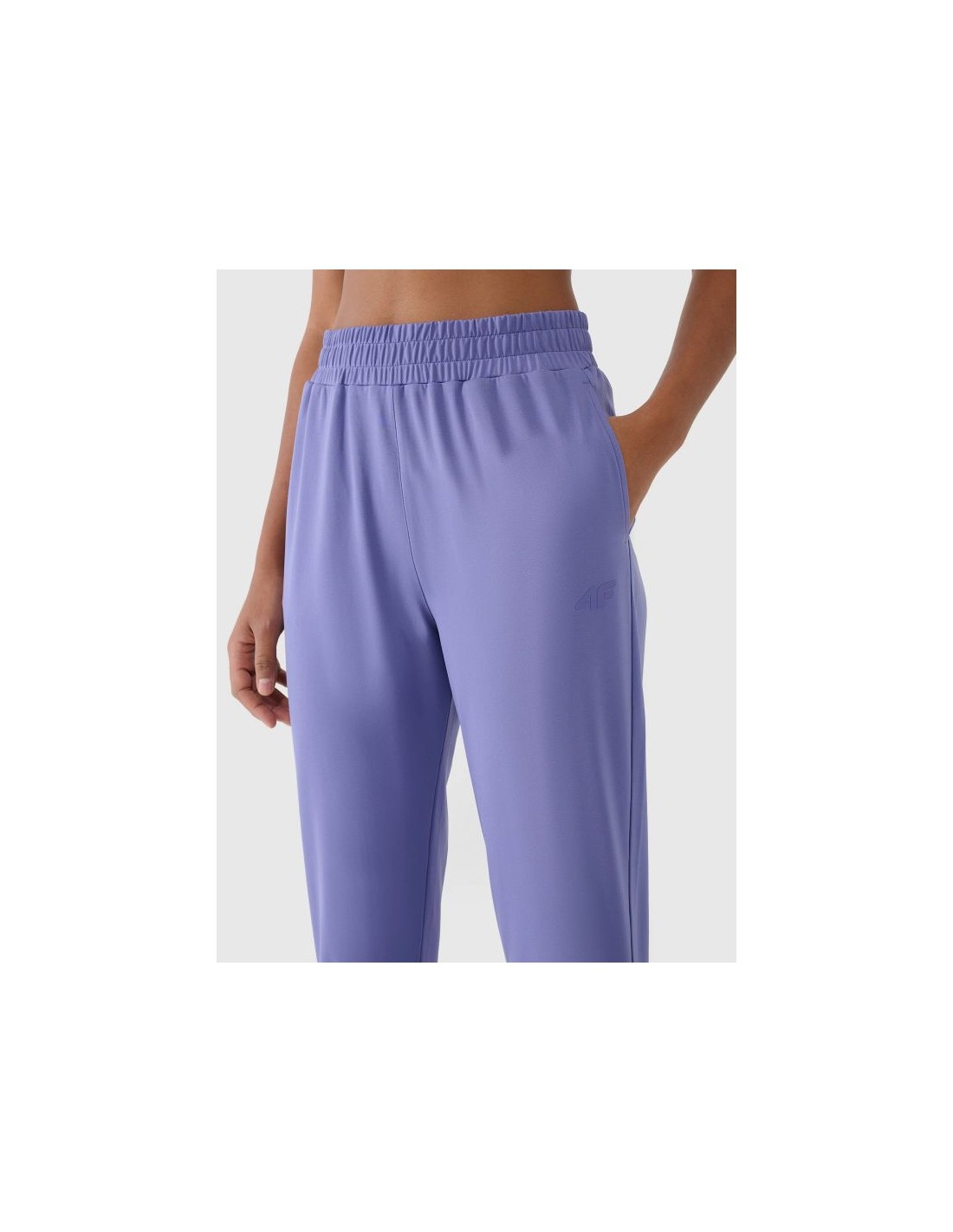 4F women's training pants are an excellent choice for women who expect comfort, support, and freedom during any type of workout. Thanks to the use of quick-drying , stretchy materials and a well-thought-out cut, these pants provide complete freedom of movement, allowing you to fully focus on your exercise and stay comfortable throughout your workout. Product Features: Regular Fit : The pants have a regular fit that comfortably fits your figure , offering comfort and flexibility during any activity. Tapered Legs with Elastic Cuffs : The legs are designed with a tapered cut and elastic cuffs provide a great fit and comfort. Interlock material : The pants are made of soft , durable interlock fabric that fits well and effectively absorbs moisture, ensuring dry comfort throughout the entire workout. Elasticity and Fit : Thanks to the addition of elastane (19%) , the material is stretchy , which allows the pants to comfortably fit the body and ensures full freedom of movement. Quick-drying 4FDry Technology : The quick-drying fibers used in 4FDry technology support the removal of moisture away from the body, which guarantees comfort and a feeling of freshness even during intense exercise. Elastic Waistband with Adjustment : The elastic waistband with external drawstring adjustment ensures a perfect fit and stability, allowing you to adjust the trousers to your individual needs. 2 Open Side Pockets : Two open side pockets allow you to store small items you want to have on hand during your workout. Perfect for Training and Daily Activity 4F training pants are a reliable choice for both intense workouts and everyday activities. Thanks to 4FDry technology , stretchy fabric , and a comfortable fit , these pants provide comfort , moisture management , and style during any activity. Choose comfort and functionality with 4F training pants – choose clothing that supports your training!