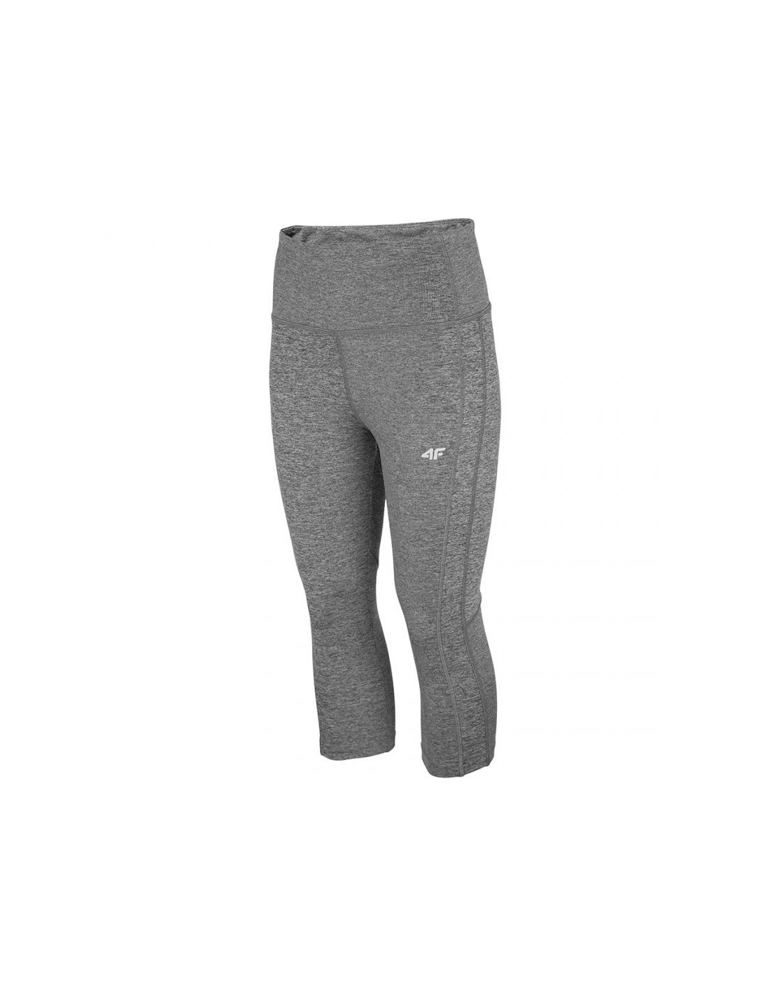 Women's leggings 4F medium gray melange NOSH4 SPDF002 24M Women's 3/4 training leggings made of elastic, moisture-wicking fabric with 4FDry technology. The high waist with a double-layered waistband provides support during intense workouts. A hidden open pocket at the waist, intended for e.g. keys. Elastic threads in the seams reduce the risk of abrasions and skin irritation. Material: 87% polyester, 13% elastane