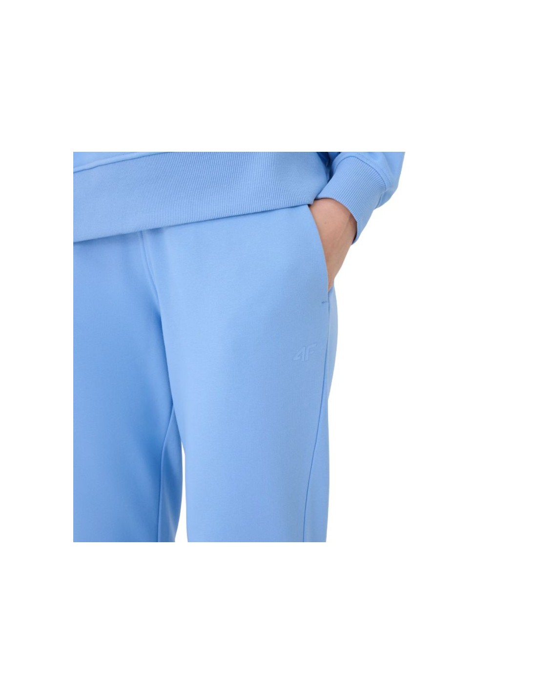 Women's trousers 4F CAS F1138 light blue 4FWMM00TTROF1138 32S Properties: 4F women's trousers are perfect for everyday wear. Technical data: Main material: 79% cotton, 21% polyester Additional material: 100% cotton · Unlined interior · Regular fit comfortably fits the body · Legs with elastic band Made of 79% natural cotton, making them soft, durable and pleasant to the touch The addition of polyester (21%) makes the material durable and wear-resistant for many seasons · Uniform colors that match many styles · The French terry sweatshirt fabric is smooth on the outside and has a visible loop weave on the inside 2 open side pockets · Waistband with external adjustment using straps