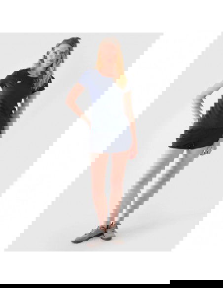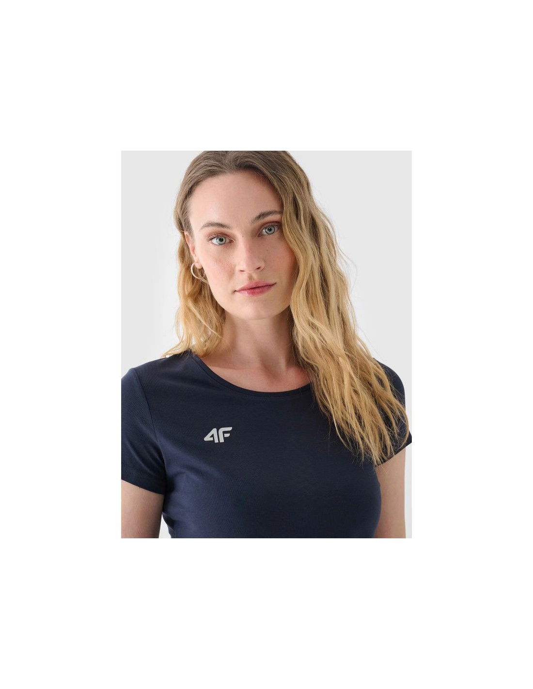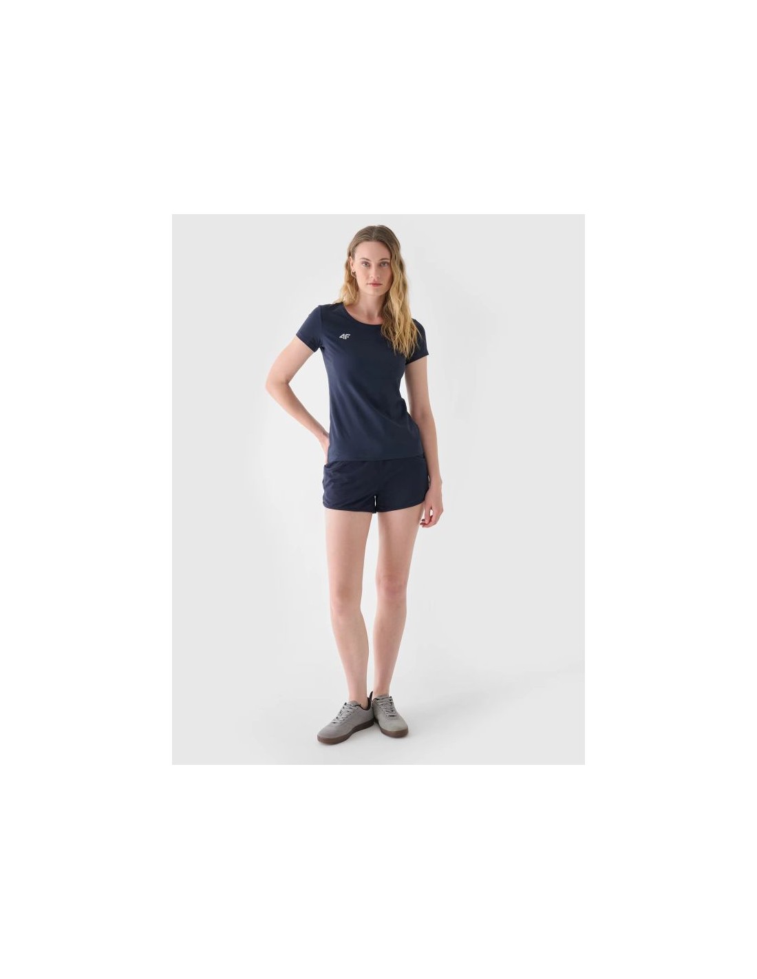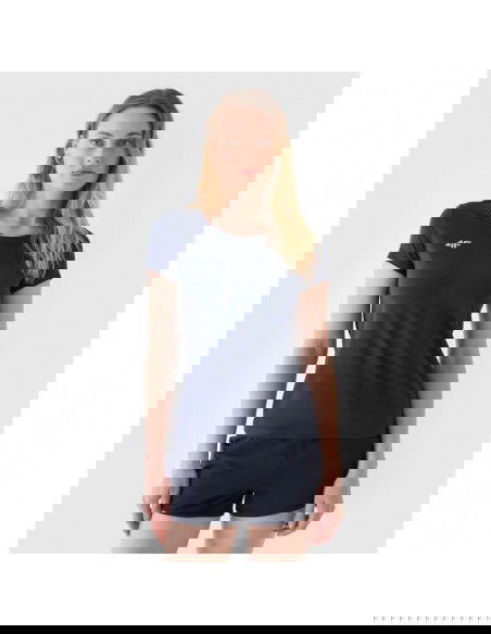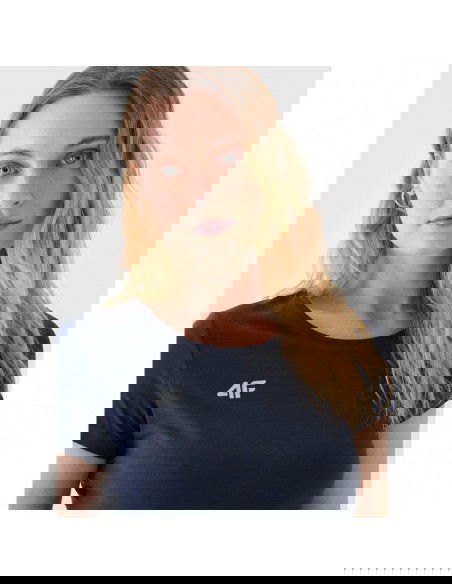 This women's T-shirt is perfect for both casual and everyday sporty outfits. It features a slim fit that hugs the body and a standard length that falls to the hips. The single jersey weave with a smooth, one-sided surface makes it flexible and comfortable to wear. This women's short-sleeved T-shirt is soft to the touch and drapes well. It's non-sheer and provides durability and comfort for year-round wear. The 4F women's T-shirt is made of 96% cotton, making it soft, durable, and comfortable to the touch. The crew neckline is finished with a light ribbed trim. size range: XS-5XL cut: slim, which adapts to the silhouette made of 96% cotton, making it soft, durable and pleasant to the touch uniform colors that match many styles soft-touch single jersey fabric with a smooth surface round neckline with light ribbed trim Detailed information about women's slim plain T-shirt - navy blue Main material: Cotton 95%, Elastane 5% Additional material: Cotton 95%, Elastane 5%