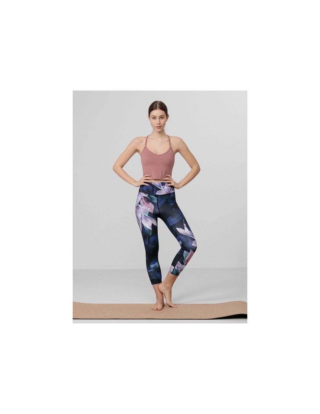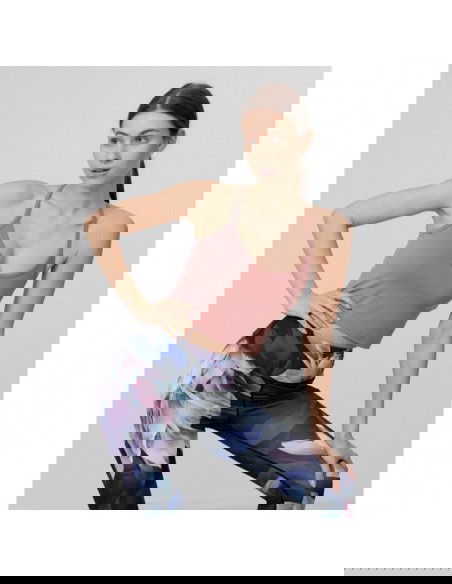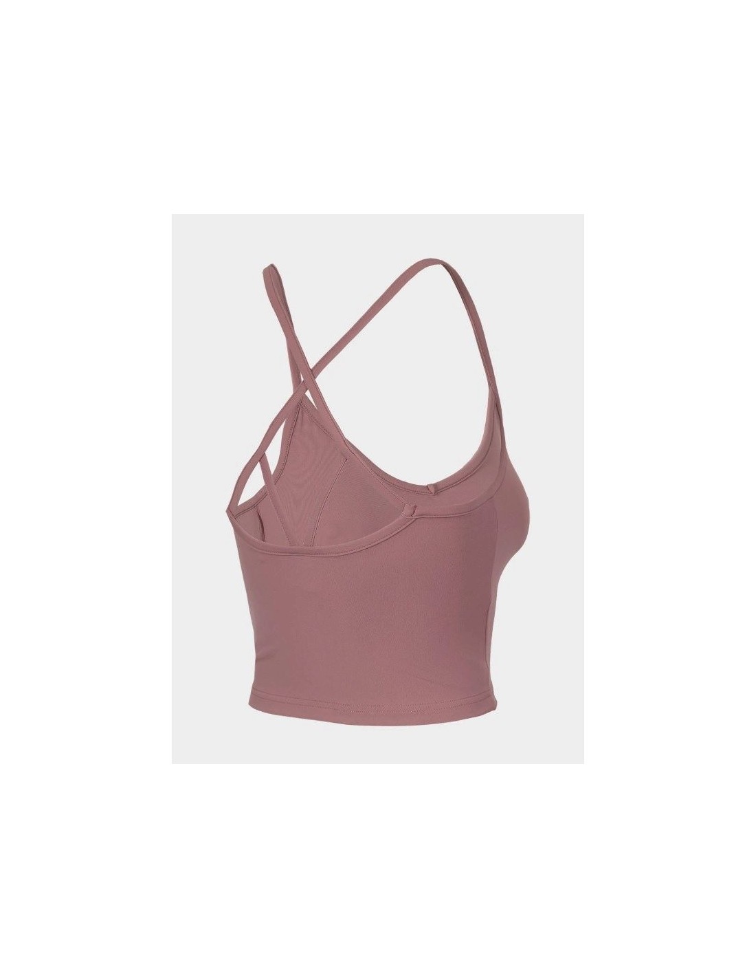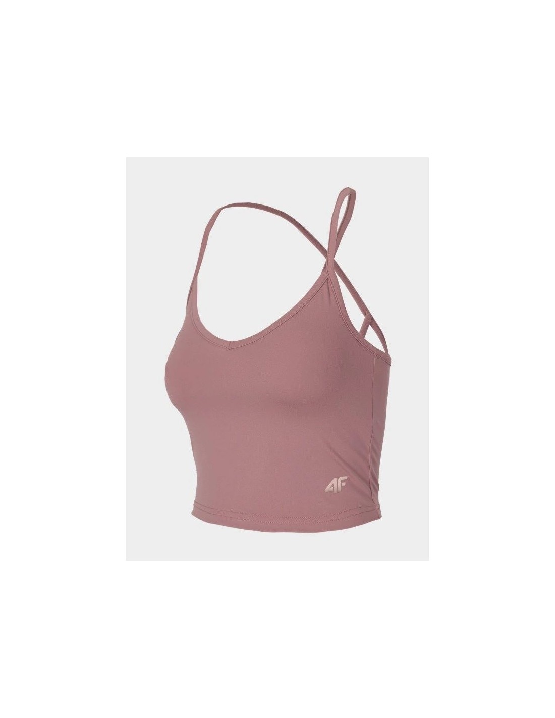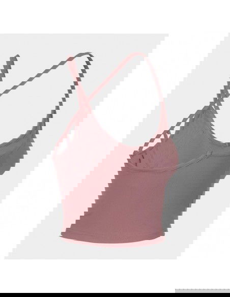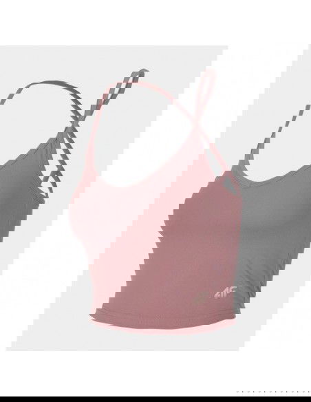 Women's Crop Top 4F H4L22-TSD027 made of soft, flexible material, which will allow for comfort and freedom during training sessions. V-neckline, crossed straps, elastic knit fabric that ensures freedom of movement, soft material with elastane. Main material: Polyamide 80%, Elastane 20%