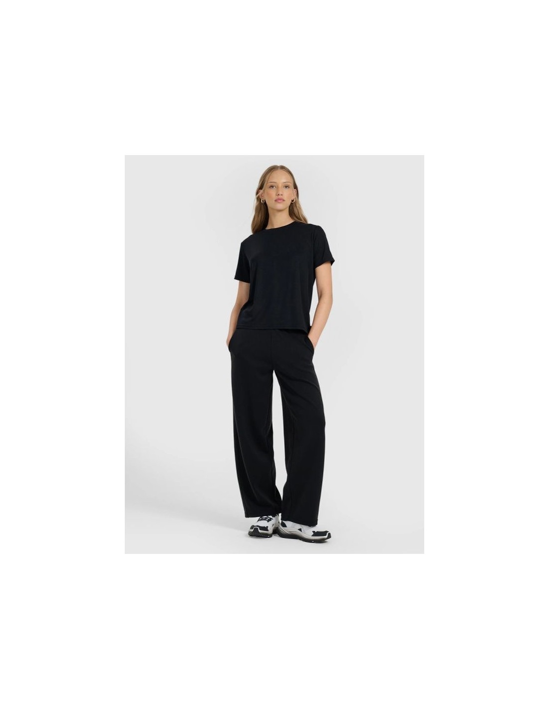 4F women's ribbed knit T-shirt - comfort and freedom for every day The 4F women's T-shirt, made of stretchy, ribbed fabric, is the perfect choice for women who value comfort and timeless style. The soft, mid-weight material conforms to the body, ensuring comfort and freedom of movement all day long. Key features Ribbed knit fabric – a flexible structure with an interesting texture that fits well to the body. Soft, thicker material – medium thickness fabric ensures comfort and durability. Round neckline – classic and comfortable, suitable for many everyday styles. Regular fit - ensures comfort and a natural fit on the body. Hip-length – a universal cut that goes great with jeans, leggings or a skirt. Stylish minimalism and comfort The stretchy ribbed fabric gives the T-shirt a modern look while also ensuring comfort. The 4F T-shirt is a great base for everyday styling—for work, school, and your free time.