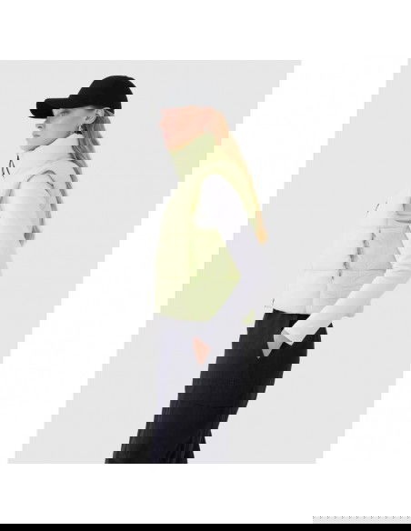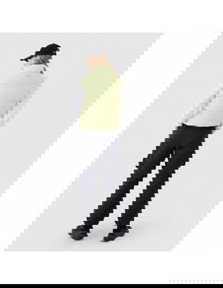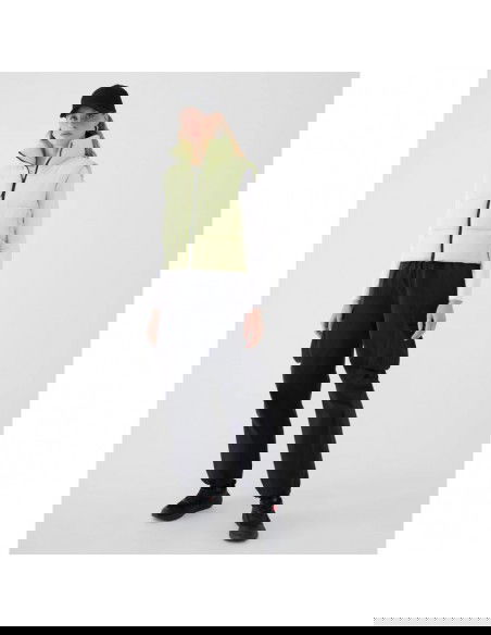 Women's Down Vest - Light and Functional This women's down vest, with its low bulk and light fill, is an excellent choice for everyday and sports activities on warmer or cloudier days during the transitional period. It protects against the cold while also serving as a layering piece. It folds easily and stores easily, making it a practical solution for various weather conditions. Classic horizontal quilting ensures good thermal insulation and appropriate compressibility, while the oversized cropped cut reaching to the waistline gives it a modern character and comfort. Product features: Cut: oversize – loose fit, full freedom of movement Style: cropped – waist length Size range: XS–XXL Filling: synthetic down – thermal insulation even in humid conditions Hydrophobic coating: limits moisture absorption Low stand-up collar: additional protection against the cold 2 side pockets: open, practical One-way zipper: with internal storm flap Bottom adjustment: tunnel drawstring with stoppers Technical parameters: Filling: synthetic down (100% polyester) Outer material: hydrophobic impregnated Why is it worth it? Synthetic down is made of lightweight polyester fibers coated with silicone. It provides thermal insulation even when exposed to moisture, dries quickly, and is easy to care for. It is also hypoallergenic and mold-resistant. Hydrophobic impregnation protects against moisture penetration, allowing water drops to run off the fabric surface instead of soaking into the interior.