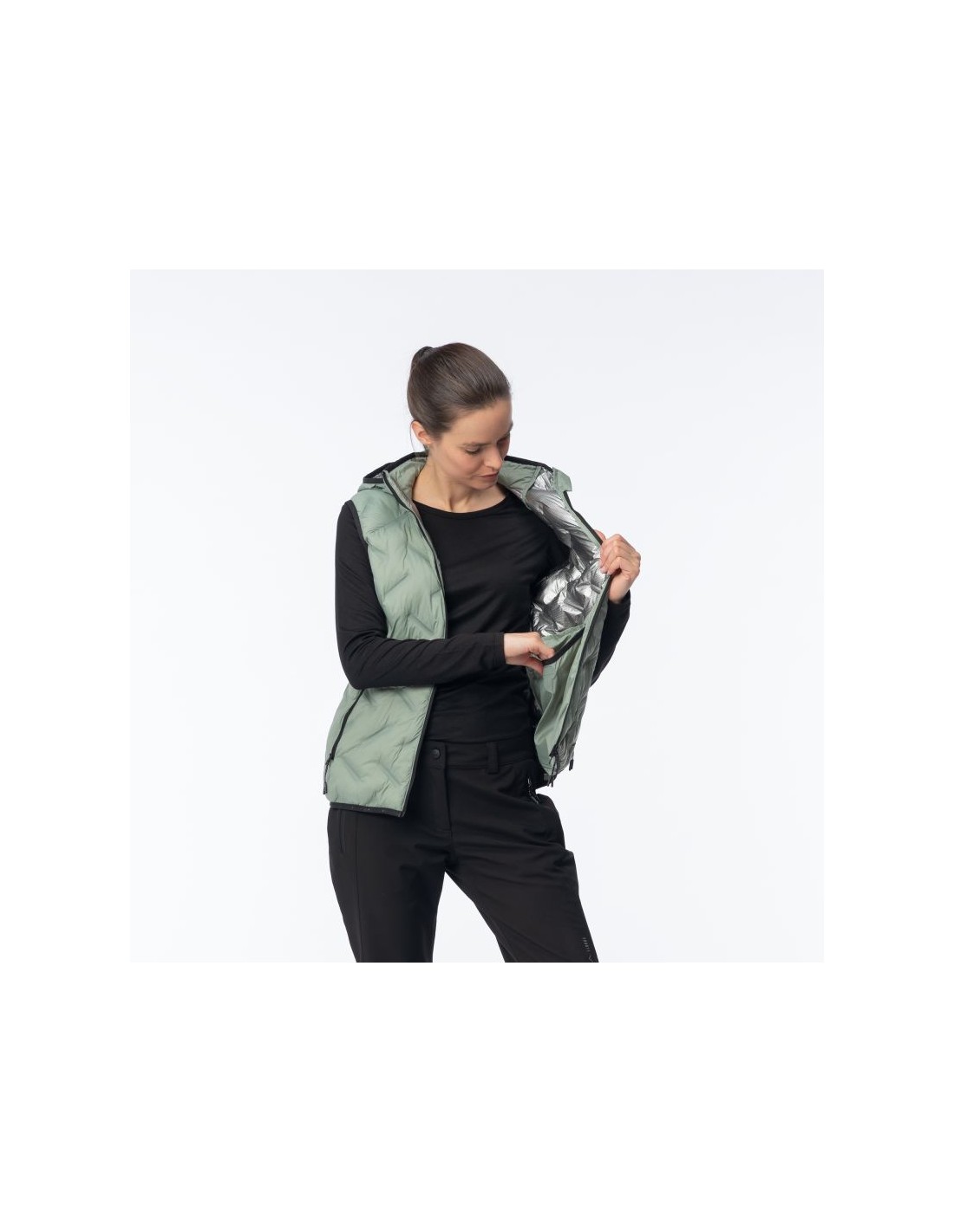Elbrus Quilted Huel Vest Primaloft W Properties: The practical HUEL VEST PRIMALOFT WO'S will perfectly complement your wardrobe. The women's quilted HUEL VEST PRIMALOFT® WO'S by Elbrus is made with Primaloft® Silver Insulation Thermoplume® synthetic fill with Cross Core™ technology . This technology enhances thermal insulation on cold days. Its construction is similar to down, yet it is lightweight and more compressible. Welded panels with synthetic insulation prevent it from shifting. This model features an integrated, insulated hood to protect you from gusts of wind. Two side pockets provide storage for small essentials. A heat-reflective interior finish adds an additional benefit to the HUEL VEST PRIMALOFT® WO'S. Primaloft® is a world-renowned synthetic insulation. You'll find it in products from Elbrus, Fitanu, and other well-known outdoor brands. It has excellent thermal retention properties and doesn't lose these properties when exposed to moisture. Two-way zipper Two side pockets Integrated hood Primaloft® Silver Insulation Thermoplume® with Cross Core™ technology Welded panels Elasticated waistband Inner pocket Reflective elements Outer material: 100% nylon Lining: 100% nylon Filling: Primaloft® Silver Insulation, 100% polyester, 95 g
