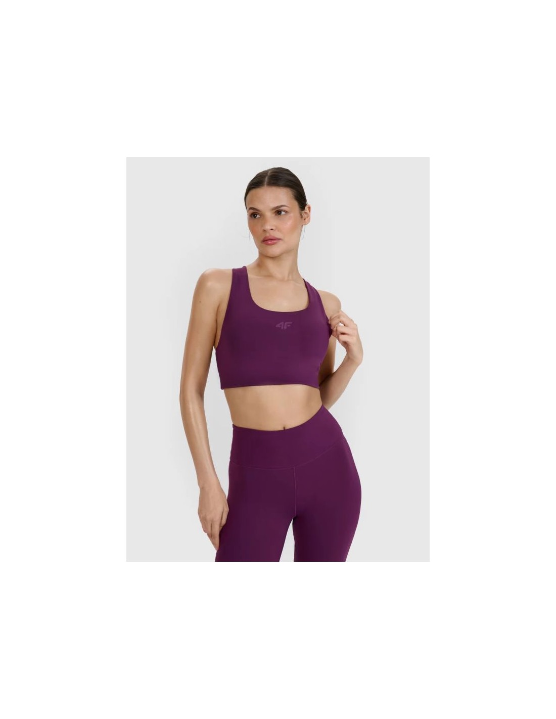 4F 4FRSS25USBAF152 Women's Training Bra – Detailed Features Slim cut – adapts to the body, ensuring comfort and freedom of movement Low support – ideal for low-impact exercises like yoga and pilates Synthetic material – durable, easy to care for and wear-resistant Elastane (18%) – guarantees elasticity and perfect fit Uniform colors – universal, suitable for various training styles Interlock knit fabric – soft, durable, with a smooth structure on both sides Round neckline – comfortable and aesthetic Soft, removable cups – adjustable support and comfort Elastic band under the bust – fits tightly to the body, providing stability Boxer back – increases comfort and freedom of movement Double-layer construction – increases durability and comfort of use 4FDry technology – quick-drying fibers effectively wick away moisture, ensuring dryness and comfort