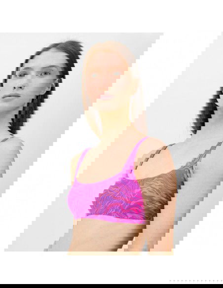 For all your summer activities, whether lounging on the beach or enjoying your free time, this women's two-piece swimsuit offers both comfort and unrestricted movement. The swimsuit features a soft, hygienic lining for optimal coverage and comfort. Quick-drying fibers effectively wick moisture away from the body. It features a straight, scoop neckline and secure plastic clasp closure. The cups feature removable pads, and the thin straps can be easily adjusted to your individual needs. sizes: XS-XXL swimsuit top slightly elastic material with elastane (18%) full-surface graphics lining provides coverage and comfort - covered style war neckline buckle closure cups with removable inserts thin adjustable straps quick-drying fibers wick away moisture DETAILED INFORMATION ABOUT THE WOMEN'S BIKINI TOP - MULTICOLOR Material: Polyamide 82%, Elastane 18% Lining: Polyester 92%, Elastane 8%