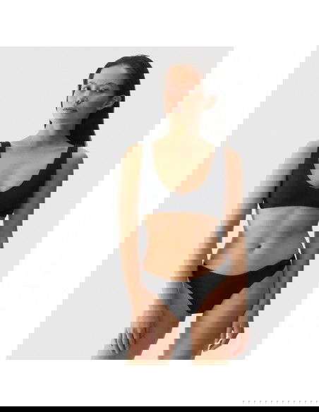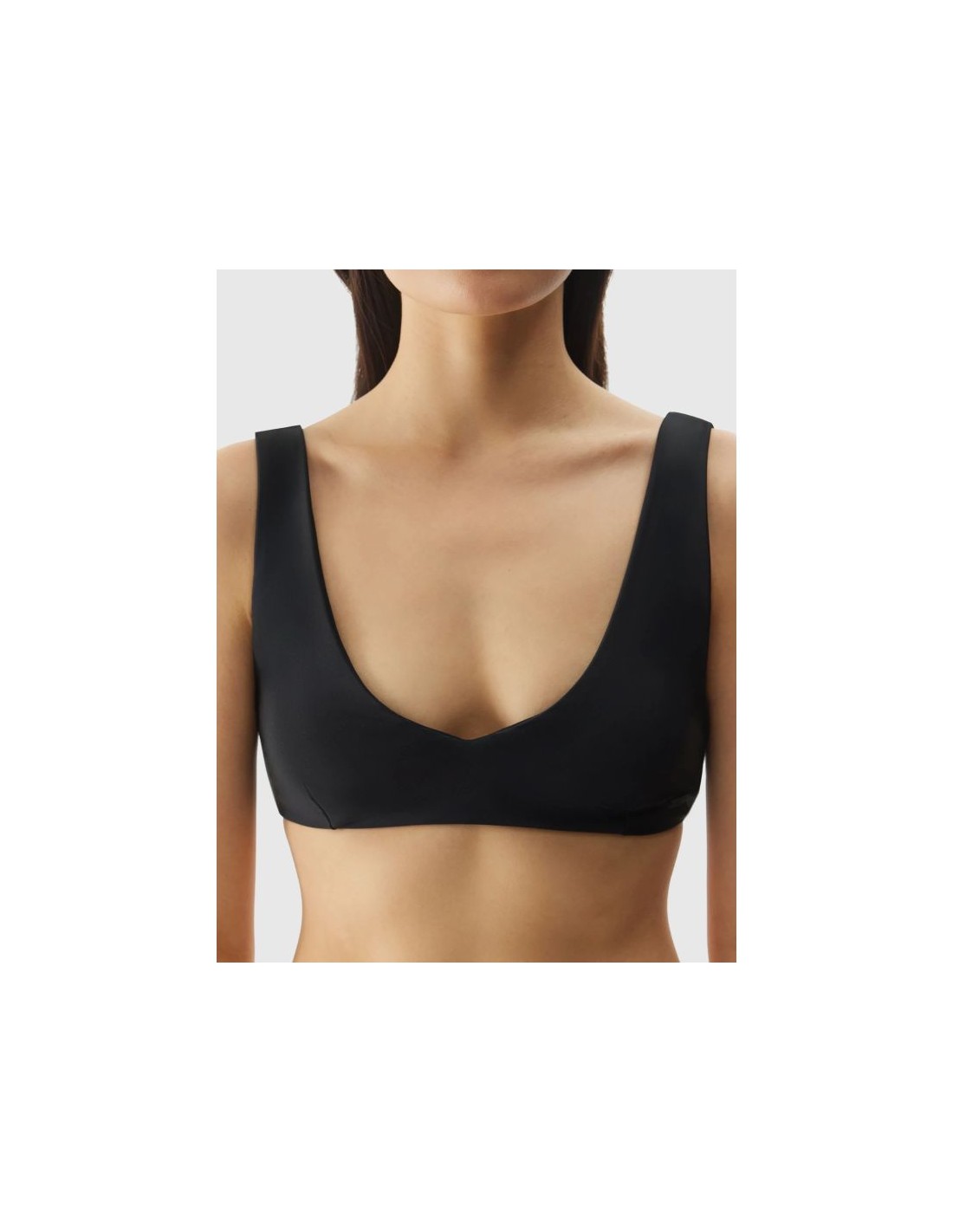 Experience ultimate comfort and unrestricted mobility with our women's bikini top, perfect for all your summer adventures, whether it's lounging on the beach or a refreshing dip. Made from high-quality synthetic material, this swimsuit and beachwear piece is durable and easy to care for. Luxuriously soft padding ensures a comfortable and modest fit. Stay dry and cool with quick-drying fibers that effectively wick away moisture. This balconette bikini top with bra-style straps features a flattering V-neckline and a secure, slip-on closure with a stylish metal buckle. Personalize your look with removable cup pads. Enjoy all-day comfort with wider, no-adjust straps. Complete your look with a chic neckline at the back. size range: XS-XXL the upper part of the swimsuit slightly stretchy material thanks to the addition of elastane (18%) uniform colors that match many styles lining provides coverage and comfort type: balconette bikini V-neck slip-on clasp cups with removable inserts non-adjustable straps neckline on the back quick-drying fibers wick away moisture Main material: Polyamide 82%, Elastane 18% Lining: Polyester 92%, Elastane 8%