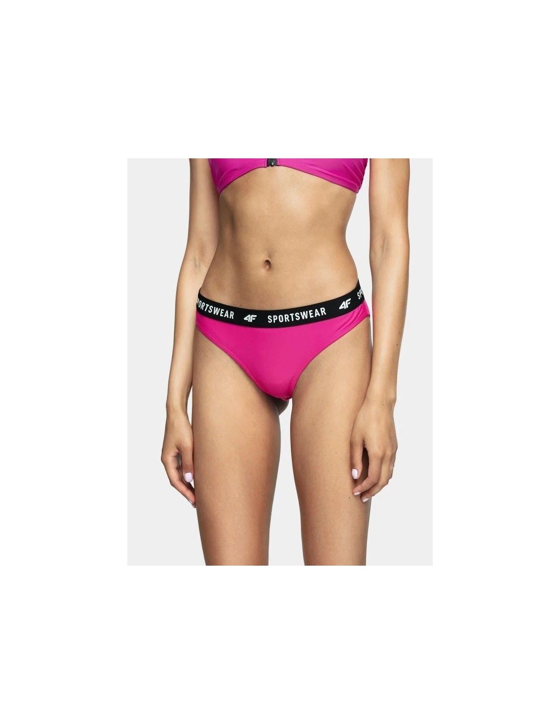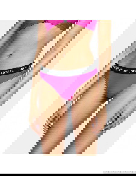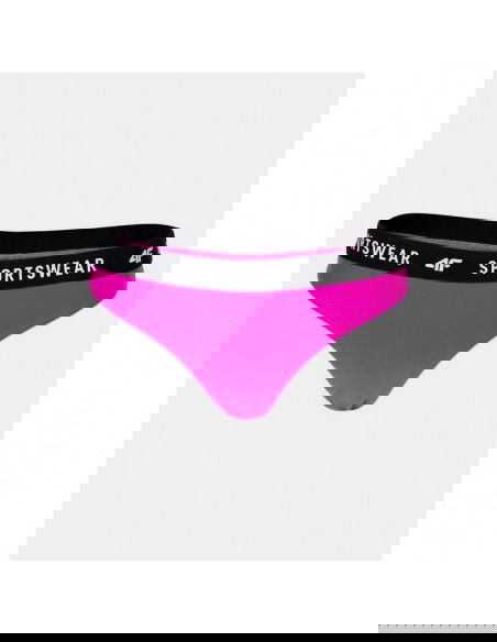 The lower part of the 4F women's swimsuit with a print on the tape, made of elastic material, will ensure comfort and convenience during water activities. Attributes: ? printed waistband, ? smooth, quick-drying material, ? delicate fabric lining ensures comfort and hygiene. Parameters: ? Lining: 100% Polyester ? Main material: Polyamide 82%, Elastane 18% ? Gender: Female ? Cut: Classic ? Discipline: Pool, Beach, Swimming