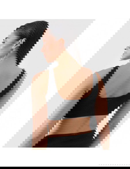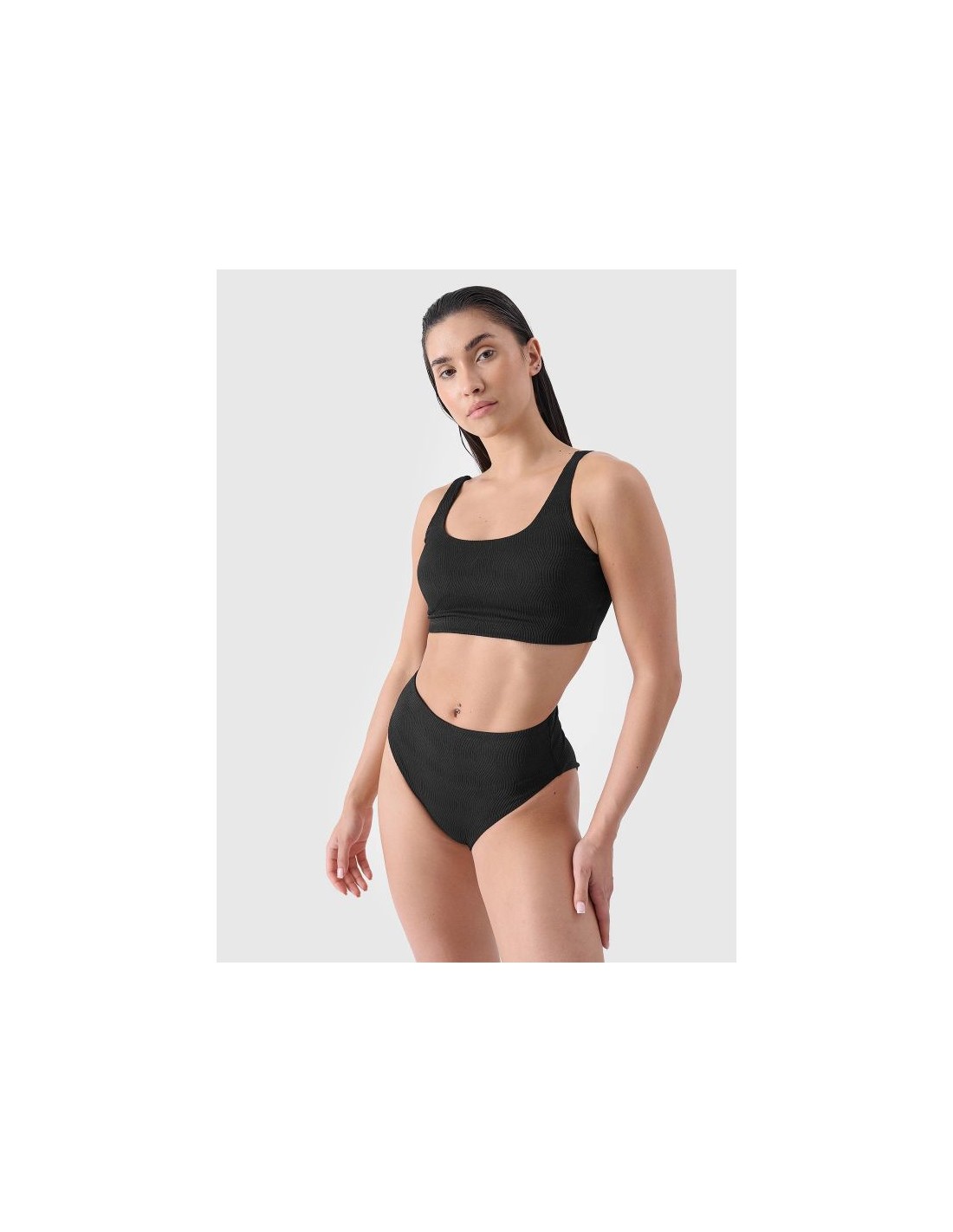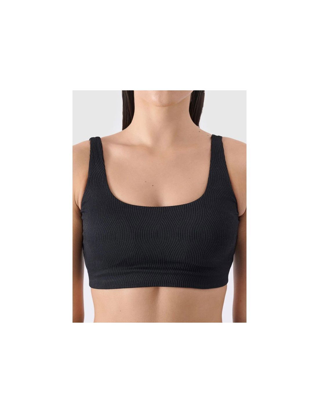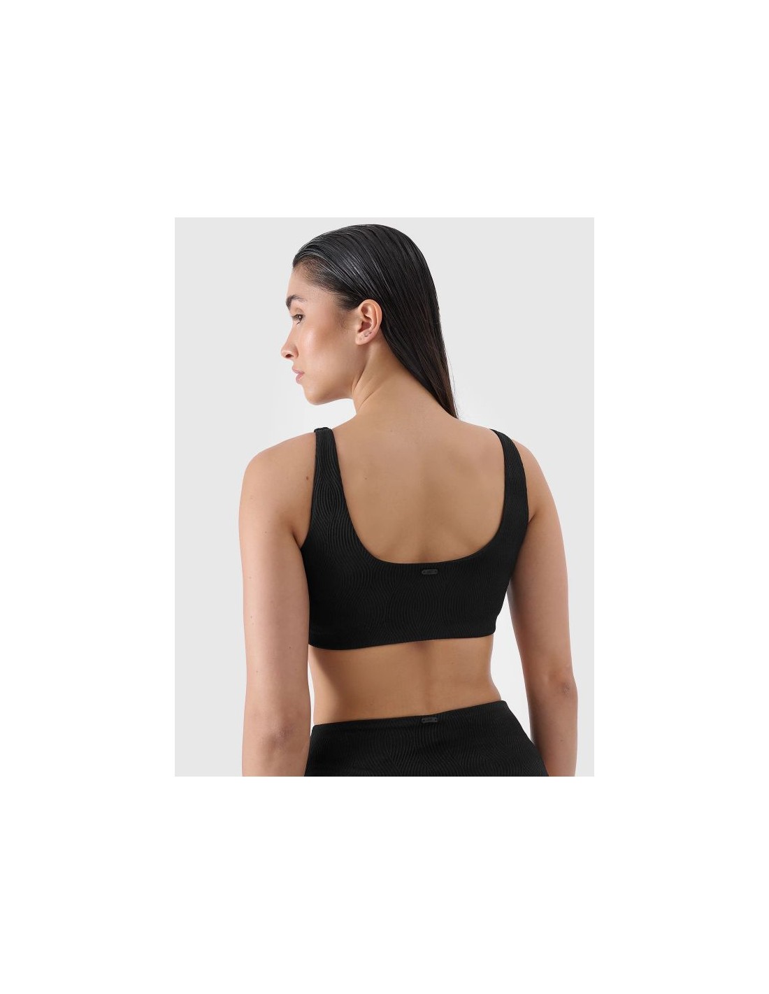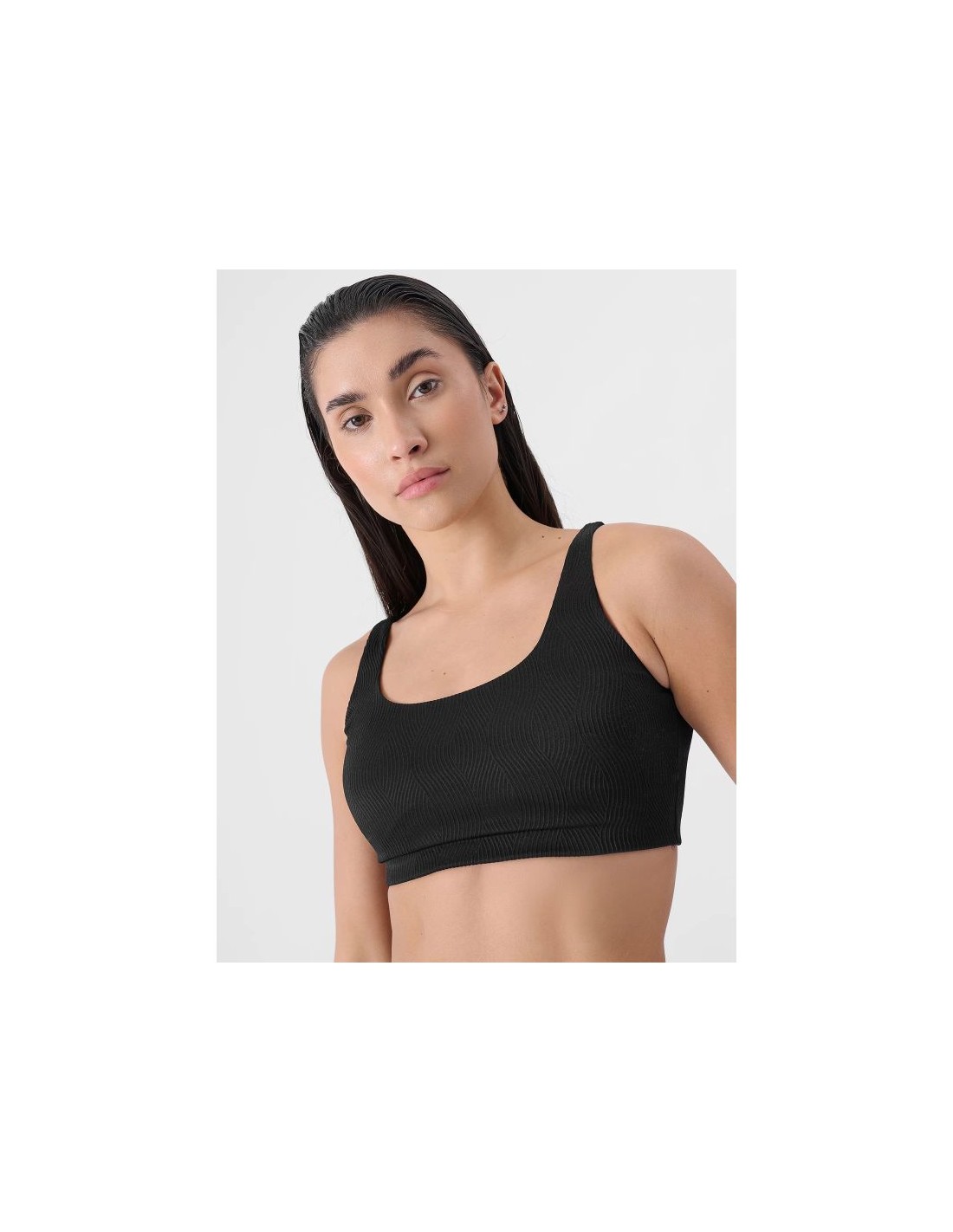 Γυναικείο μπικίνι τοπ από την 4F με κορδόνια, σε μαύρο χρώμα.