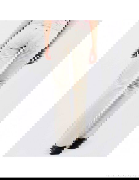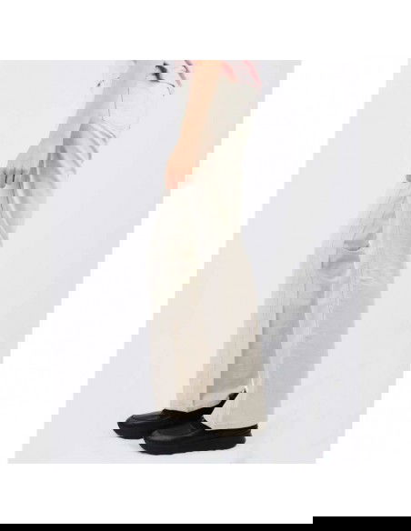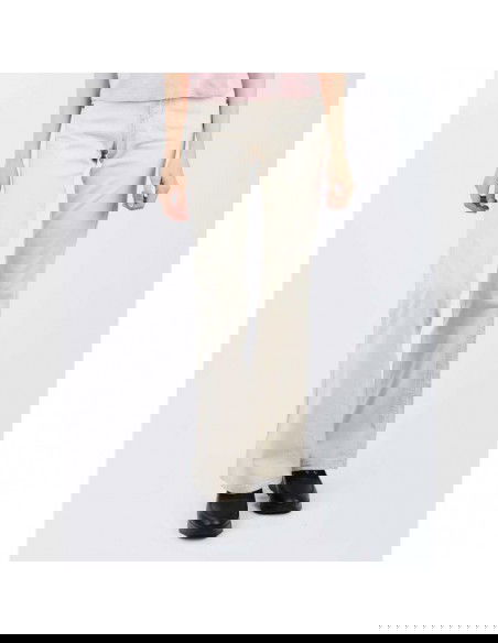 Women's fabric trousers with low waist and wide legs. Zippered.