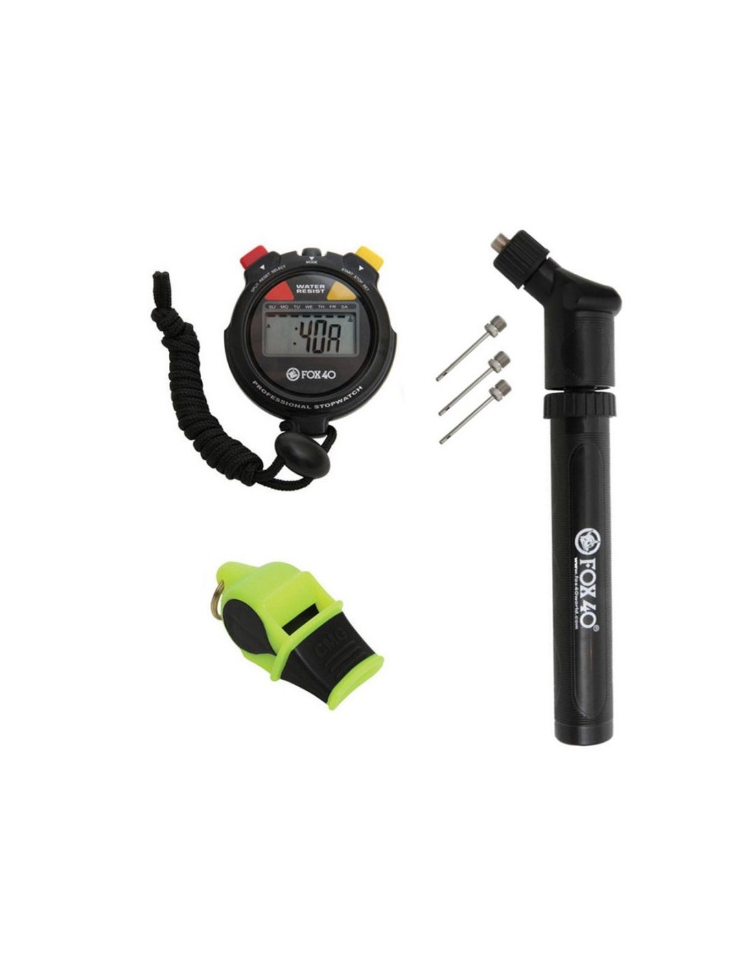 Το σετ περιλαμβάνει αντλία με βελόνες, χρονόμετρο και σφυρίχτρα.