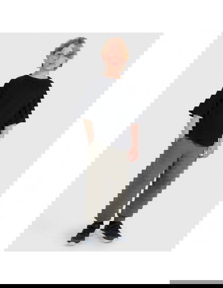 Boy's T-shirt 4F A plain boys' T-shirt is a versatile wardrobe staple that works well with both casual and sporty outfits. The loose, oversized cut drapes comfortably on the body without restricting movement, while the standard hip-length length ensures comfort for everyday wear. Made of 100% cotton , this T-shirt is soft, durable, and pleasant to the touch. The 180 gsm weight makes the material lightweight, suitable for warmer days, while remaining opaque and draping well. The single jersey fabric with a smooth surface ensures high comfort. The round neckline is finished with light ribbed trim, and the raglan sleeves emphasize the sporty character and increase freedom of movement. Boy's T-shirt – features: Weight: 180 gsm – lightweight material, perfect for warmer days Size range: 122-164 Cut: oversize – casual and comfortable Length: standard, hip-length Material: 100% cotton – soft, durable and pleasant to the touch Colors: uniform, suitable for many styles Knitwear: single jersey – smooth surface Neckline: round, finished with rib Sleeves: raglan – emphasize the sporty character and ensure freedom of movement