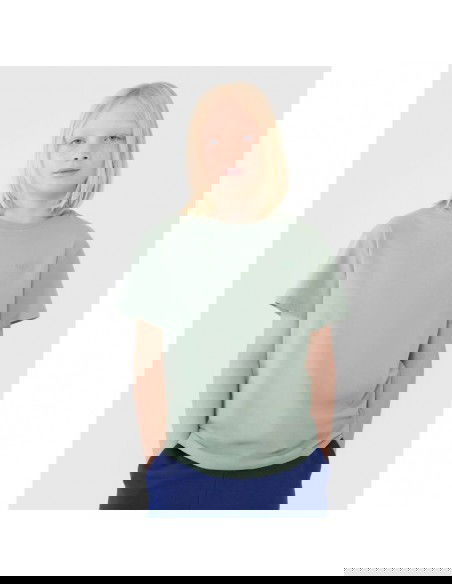 Boys' plain T-shirt - a comfortable base for everyday styling The 4F T-shirt for boys is a versatile everyday option that works well with both casual and sporty outfits. Its classic, minimalist design without a print makes it easy to pair with a variety of outfits – from school, to physical activity, to everyday outings. The oversized cut of this T-shirt loosely fits the body and allows for unrestricted movement, ensuring all-day comfort. Made of soft, smooth single jersey fabric , it guarantees elasticity and a pleasant feel against the skin. Thanks to its 100% cotton construction , this T-shirt is durable, breathable, and gentle on baby's skin. The round neckline with a light ribbed trim enhances comfort and maintains its shape even after numerous washes. Product features: Size range: 122–164 cm – perfect fit for your child's figure Cut: oversize – loose and comfortable Composition: 100% cotton – softness, durability and breathability Knitwear: single jersey – smooth, elastic and pleasant to the touch Neckline: round with slight rib – comfortable and classic Color: solid – universal and easy to combine with other clothes Length: standard - reaching to the hip line A timeless basic that should be a staple in every boy's wardrobe. It's perfect for any season – worn solo in summer, or layered under a sweatshirt or jacket in winter.