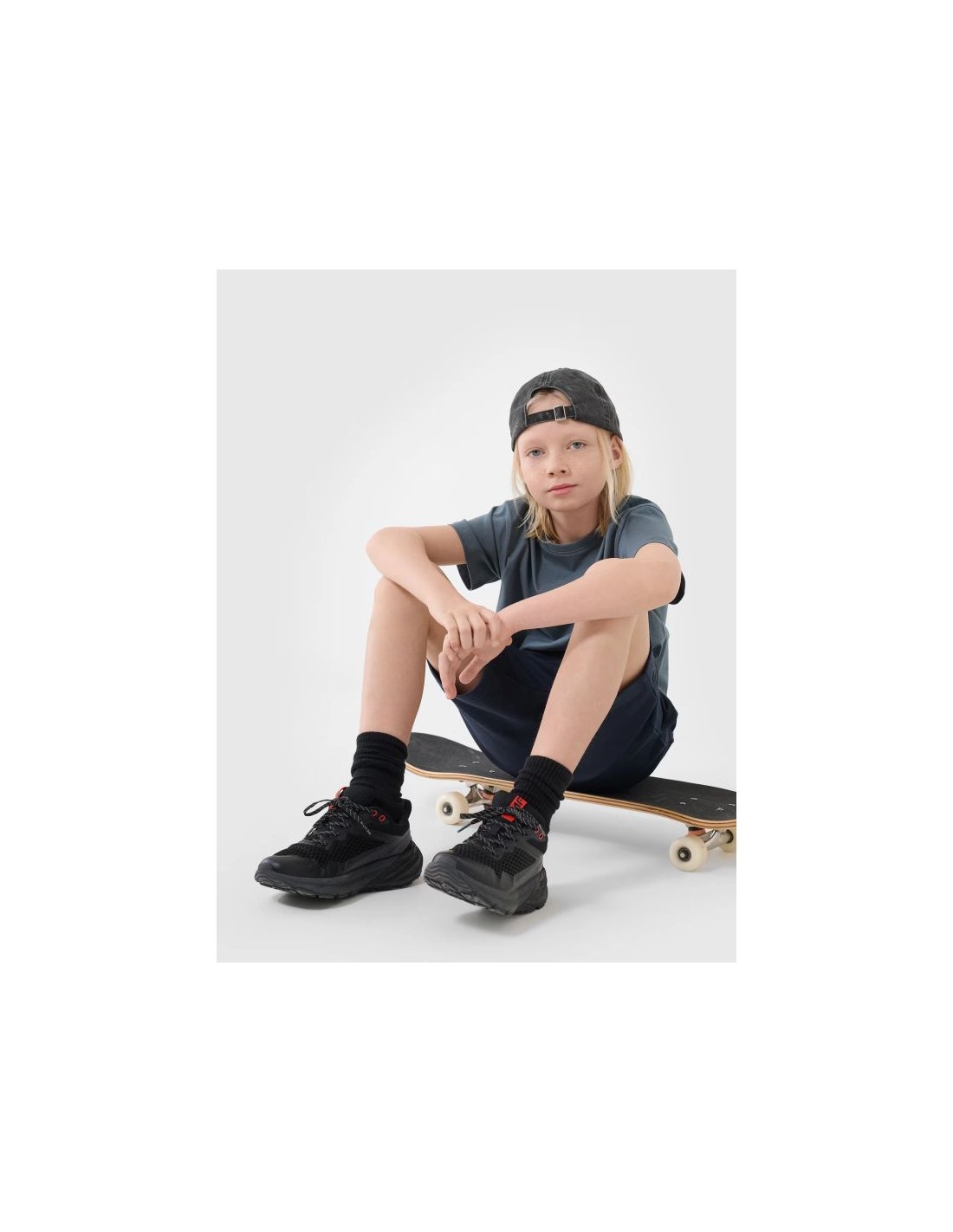 Boys' plain T-shirt - a comfortable base for everyday styling The 4F T-shirt for boys is a versatile everyday option that works well with both casual and sporty outfits. Its classic, minimalist design without a print makes it easy to pair with a variety of outfits – from school, to physical activity, to everyday outings. The oversized cut of this T-shirt loosely fits the body and allows for unrestricted movement, ensuring all-day comfort. Made of soft, smooth single jersey fabric , it guarantees elasticity and a pleasant feel against the skin. Thanks to its 100% cotton construction , this T-shirt is durable, breathable, and gentle on baby's skin. The round neckline with a light ribbed trim enhances comfort and maintains its shape even after numerous washes. Product features: Size range: 122–164 cm – perfect fit for your child's figure Cut: oversize – loose and comfortable Composition: 100% cotton – softness, durability and breathability Knitwear: single jersey – smooth, elastic and pleasant to the touch Neckline: round with slight rib – comfortable and classic Color: solid – universal and easy to combine with other clothes Length: standard - reaching to the hip line A timeless basic that should be a staple in every boy's wardrobe. It's perfect for any season – worn solo in summer, or layered under a sweatshirt or jacket in winter.