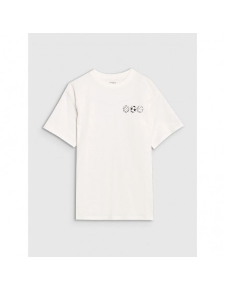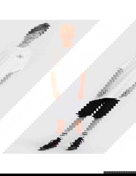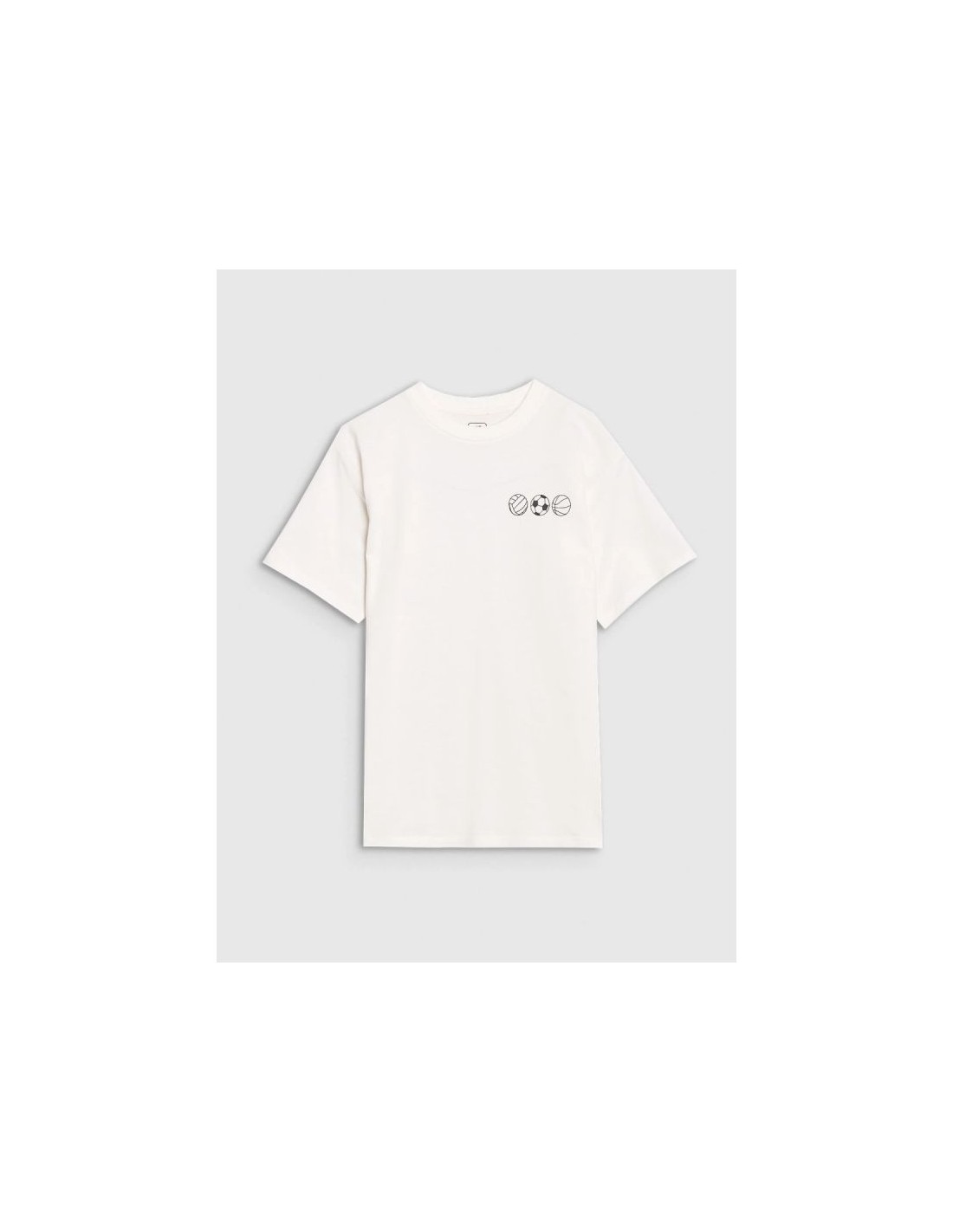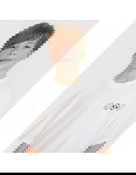 Boys' 4F T-shirt with print This boys' printed T-shirt is the perfect everyday choice—it works well with both casual outfits and active days . The oversized cut drapes comfortably on the body, and the standard hip-length ensures comfortable wear. This T-shirt is made of 100% cotton , ensuring softness, a pleasant feel, and durability. The 160 gsm single jersey fabric is flexible, lightweight, and drapes well, while also being non-sheer. The model has a round neckline with a light rib that increases comfort, and a print on the front that gives the whole thing a fashionable character. Boy's T-shirt – FEATURES: Size range: 122–164 cm Weight: 160 gsm Cut: oversize – fits loosely on the body Material: 100% cotton – soft and durable Knitwear: single jersey – smooth and pleasant to the touch Length: standard, hip-length Neckline: round with a slight rib Print: front