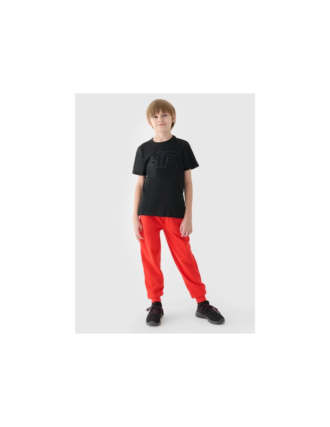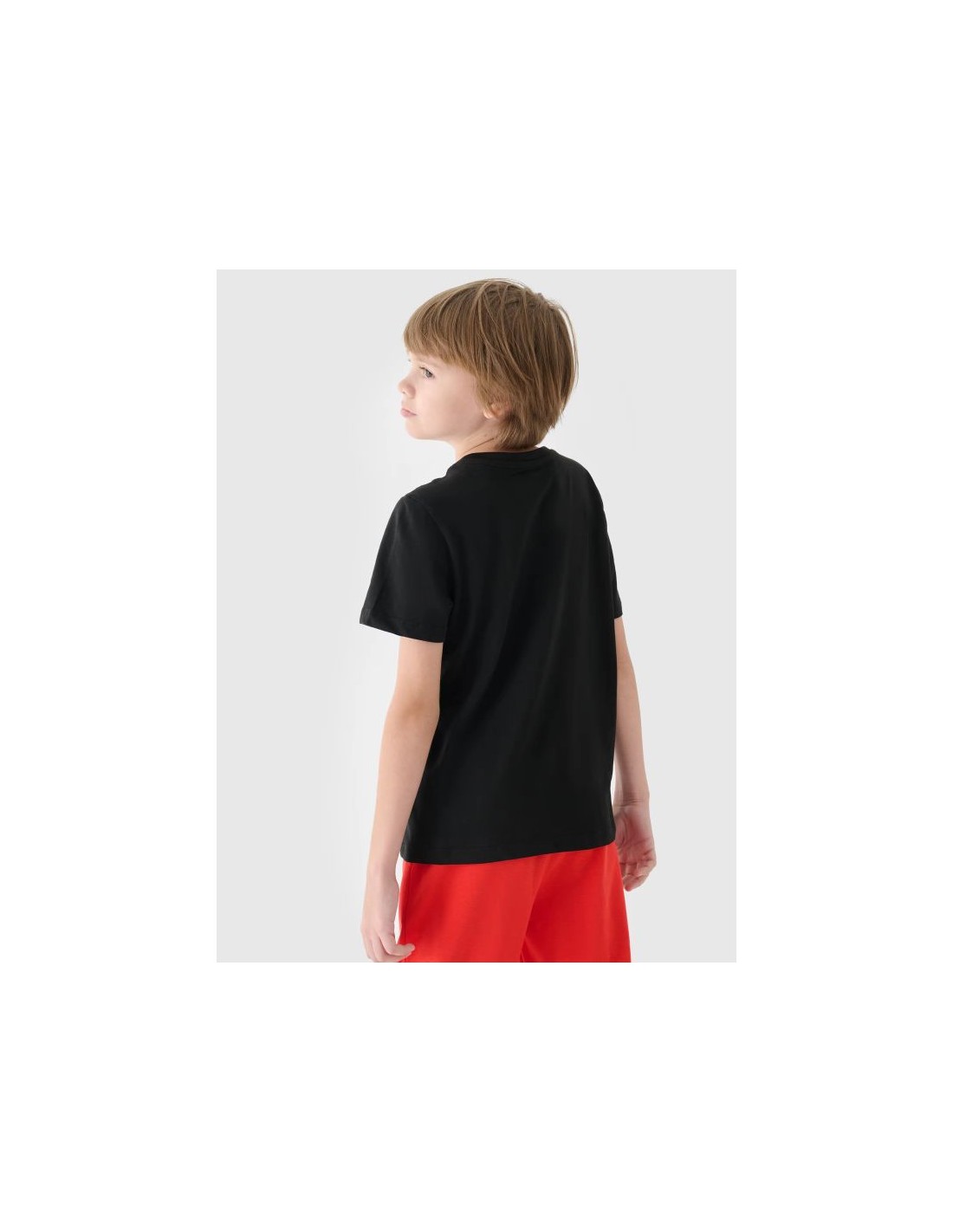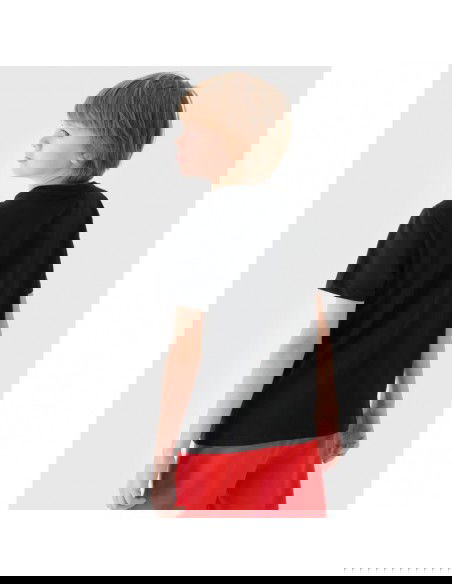 This boys' short-sleeved T-shirt, with its 180 gsm weight, is soft to the touch and drapes well. It's non-sheer and provides durability and comfort for year-round wear. The boys' 4F T-shirt is made of 100% cotton, making it soft, durable, and pleasant to the touch. The crew neckline is finished with a light ribbed trim. A 4F print is visible on the front. weight: 180 gsm size range: 122-164 cut: regular, which comfortably fits the figure standard hip-length cut made of 100% cotton, making it soft, durable and pleasant to the touch uniform colors complementing any styling soft-touch single jersey fabric with a smooth surface round neckline with light ribbed trim 4F front print Detailed information about Boy's Printed T-shirt - Black Main material: 100% cotton