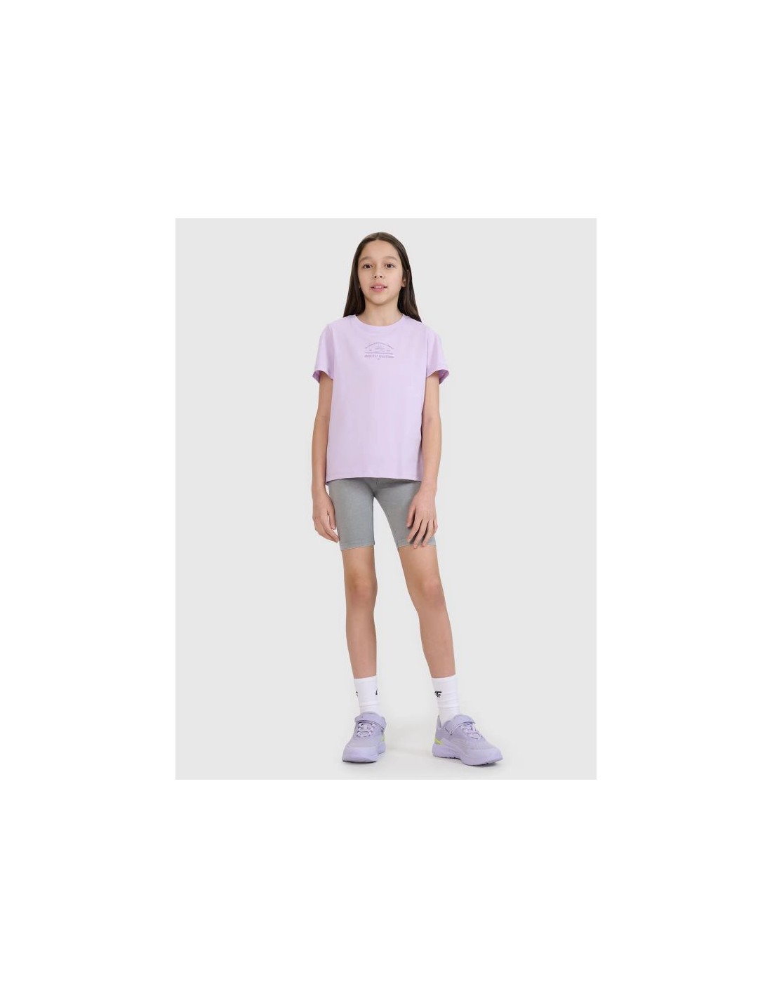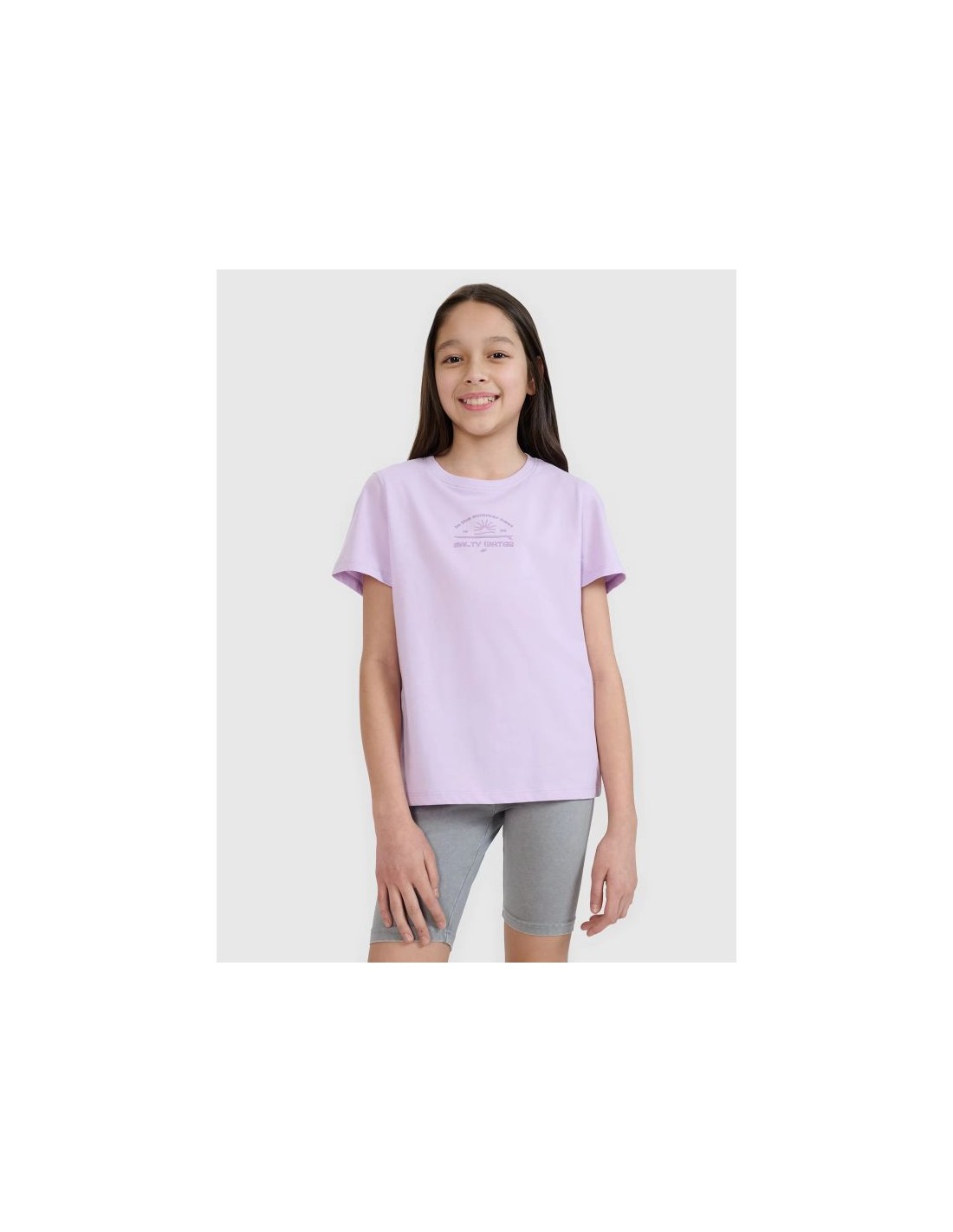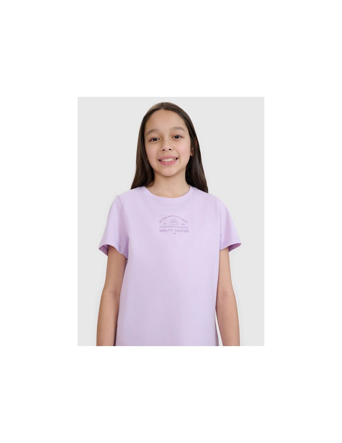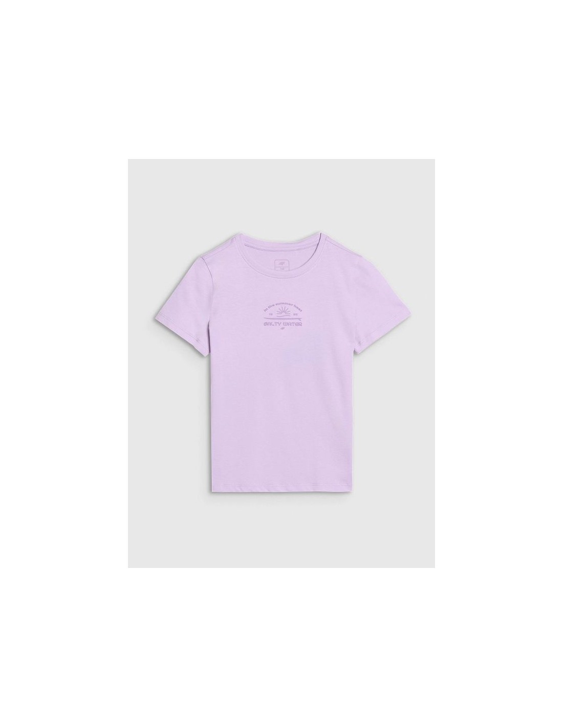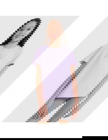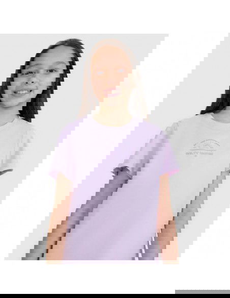 The girl's T-shirt is perfect as an element of both casual and sporty everyday styling . It has a regular fit that comfortably adapts to the body and a standard length that reaches to the hips. The single jersey weave with a smooth surface on one side makes the T-shirt flexible and comfortable to wear. The girls' short-sleeved T-shirt , thanks to its 160 gsm weight , is soft, light and airy - perfect for summer or as an undershirt under a sweatshirt or shirt. This 4F girls' T-shirt is made of 100% cotton , ensuring comfort , durability , and a pleasant feel . The crew neckline is finished with a light rib, and the surfer print adds energy and summer style. T-shirt for girls – FEATURES: Weight 160 gsm – light and durable material , ensuring comfort of wearing Size range 122–164 – fits a variety of body shapes Regular fit – comfortable fit, without being too tight 100% cotton – soft , durable and pleasant to the touch fabric Uniform colors – universal design , suitable for many styles Single jersey fabric – smooth and soft structure Round neckline with light ribbed detailing – a flexible and comfortable finish Surfer print – a dynamic accent inspired by beach style