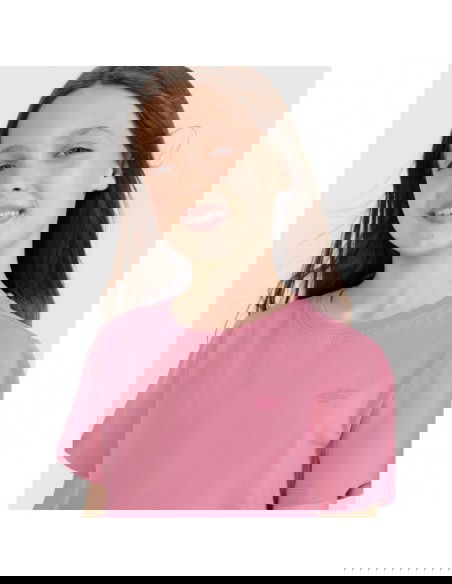 4F Regular Girls' T-Shirt - Everyday Comfort in Purple This girls' regular, plain T-shirt is a perfect wardrobe staple for active girls. It works well with both everyday and sporty outfits, offering comfort and functionality – especially on warmer days. Key product features Regular fit – classic design, comfortably fitted to the body Weight 150 gsm - light and airy single jersey fabric , perfect for summer or as an undershirt 100% cotton – a natural material that is soft , durable and pleasant to the touch Smooth single jersey weave – flexible, uniform surface, ensuring comfort of wearing Round neckline with light ribbed detailing – delicately finished neckline, resistant to deformation Uniform, intense purple color – a universal color, easy to style This 4F girls' T-shirt combines lightness , natural material and versatility , making it a staple for summer styling and outdoor activities.