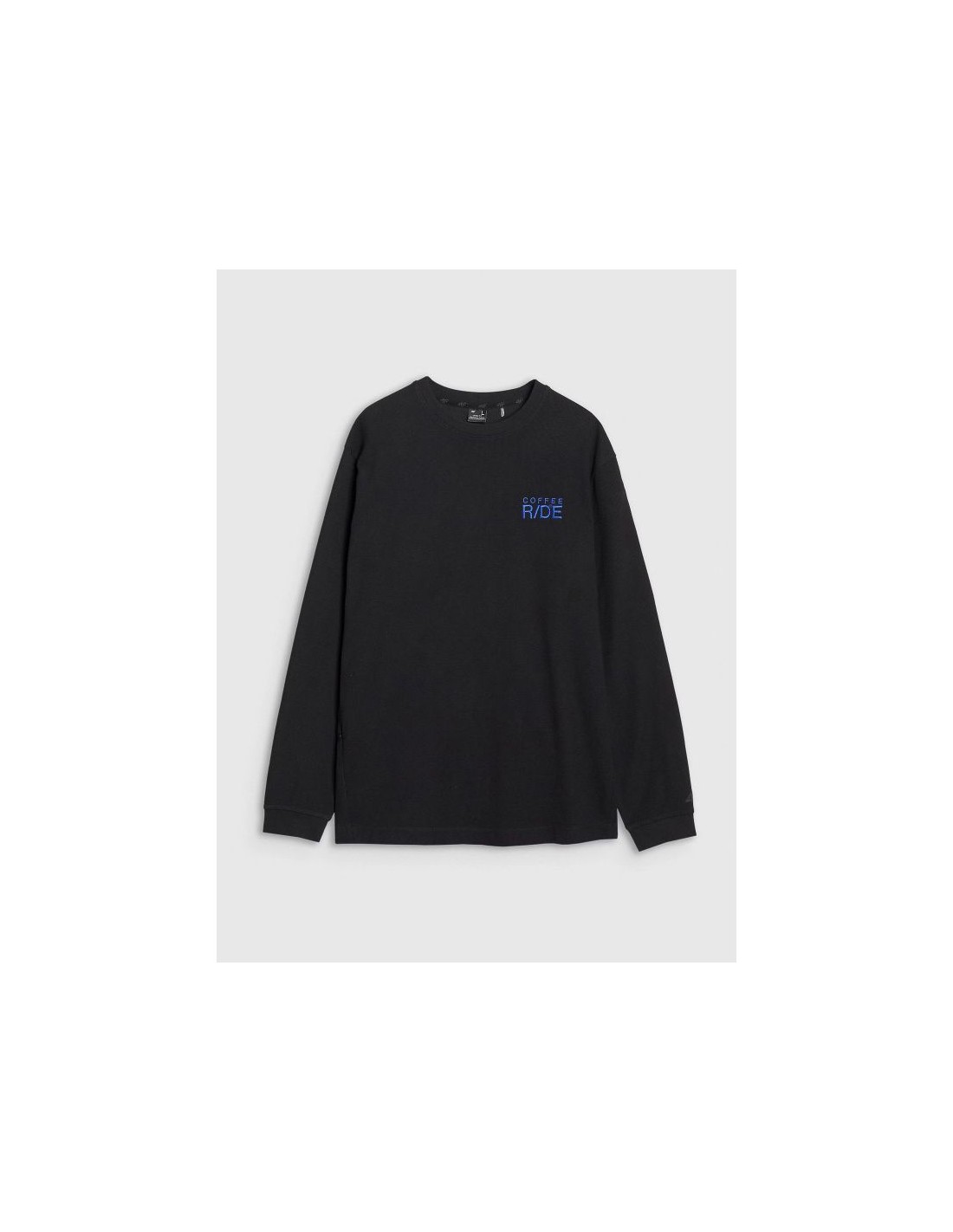 Men's long sleeve oversized T-shirt with Coffee Ride embroidery A men's long sleeve is a versatile wardrobe staple that works well with both casual and sporty outfits. The loose, oversized fit allows for freedom of movement, while the sturdy 220 gsm fabric ensures durability and comfort. This T-shirt is made of 60% cotton and 40% polyester , providing a blend of softness and durability. The structured knit gives it a unique look, while Coolmax technology effectively wicks away moisture, keeping you comfortable all day long. Featuring a round neckline with light ribbed detailing, dropped shoulders , and a small side zip pocket , the front features fashionable "Coffee Ride" embroidery for a stylish touch. Key features: Weight: 220 gsm – a solid material for every season Size range: XS–XL Oversize cut – freedom and comfort Material: 60% cotton, 40% polyester Structured knit fabric – unique texture Uniform colors – suitable for many styles Coolmax technology – effective moisture wicking Round neckline with light ribbed detail "Coffee Ride" embroidery on the front Small side pocket with zipper Dropped shoulder line – a looser, modern cut