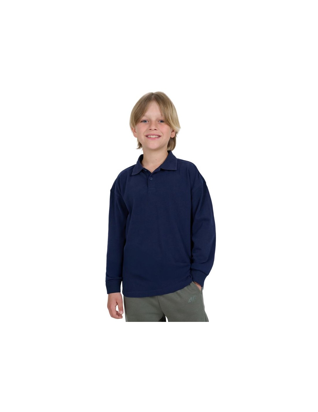 4F Jr longsleeve t-shirt 4FJWAW25TLONM483 Properties: Boy's longsleeve t-shirt 4F The 4F polo shirt for boys combines durability with comfort. Material: 100% cotton · Weight 230 gsm - ensures optimal material thickness, combining durability with wearing comfort · Regular fit - fits comfortably on the body without restricting movement. Solid colors - easy to match with various wardrobe items. Single jersey fabric · Peach effect - a delicately brushed surface with an exceptionally soft and velvety finish · Polo collar - a classic finish that gives an elegant, sporty character. Long sleeves.