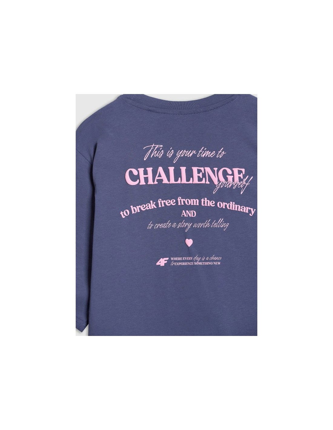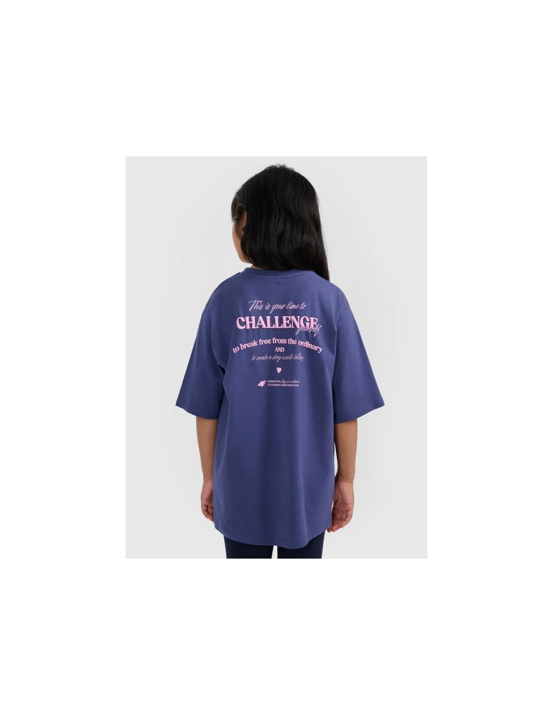 4F oversize girls' T-shirt with print - style, comfort and freedom of movement The 4F girls' T-shirt is the perfect everyday choice—it combines a fashionable look with maximum comfort. The loose, oversized cut allows for freedom of movement, while the soft cotton fabric ensures a comfortable fit and breathability, even on warmer days. Key features Size range 122-164 – fits a variety of body shapes and ages. Oversize cut – a fashionable, loose design that provides comfort and freedom. Made of 100% cotton - soft, durable and pleasant to the touch. Single jersey fabric – a smooth, flexible surface for increased comfort. Solid colors - easy to match with everyday styles. Round neckline with light ribbed detailing for a classic, durable finish. Print on the front and back – a striking detail emphasizing youthful style. Everyday comfort The 4F girls' T-shirt is perfect for active girls who value comfort and style. Natural cotton ensures comfort, while the loose, oversized cut allows for complete freedom of movement. It's a perfect choice for school, a walk, or meeting friends.