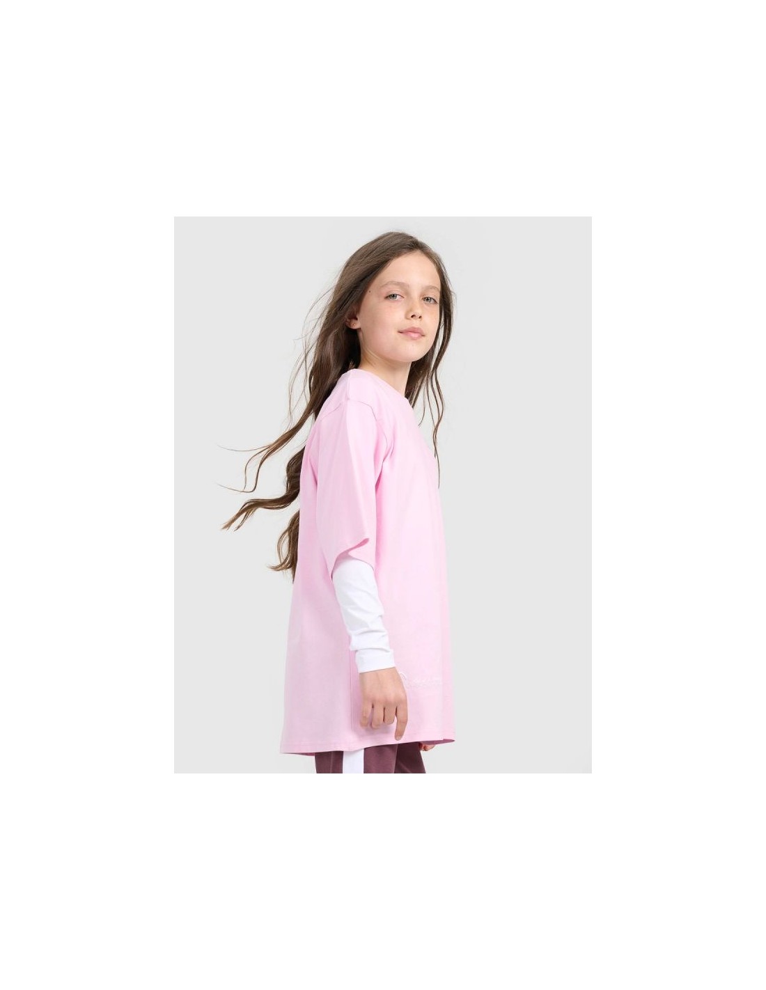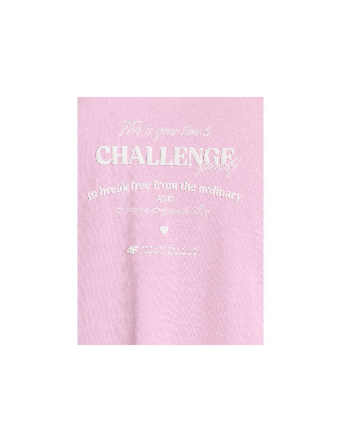 4F oversize girls' T-shirt with print - style, comfort and freedom of movement The 4F girls' T-shirt is the perfect everyday choice—it combines a fashionable look with maximum comfort. The loose, oversized cut allows for freedom of movement, while the soft cotton jersey ensures a comfortable fit and breathability, even on warmer days. Key features Size range 122-164 - fits a variety of body shapes and ages. Oversize cut – a fashionable, loose design that provides comfort and freedom. Made of 100% cotton - soft, durable and pleasant to the touch. Single jersey fabric – a smooth, flexible surface for increased comfort. Solid colors - easy to match with everyday styles. Round neckline with light ribbed detailing for a classic, durable finish. Print on the front and back – a striking detail emphasizing youthful style. Everyday comfort The 4F girls' T-shirt is perfect for active girls who value comfort and style. Natural cotton ensures comfort, while the loose, oversized cut allows for complete freedom of movement. It's a perfect choice for school, a walk, or meeting friends.