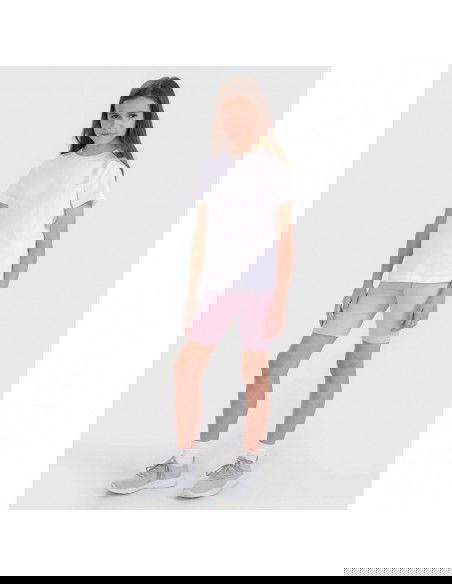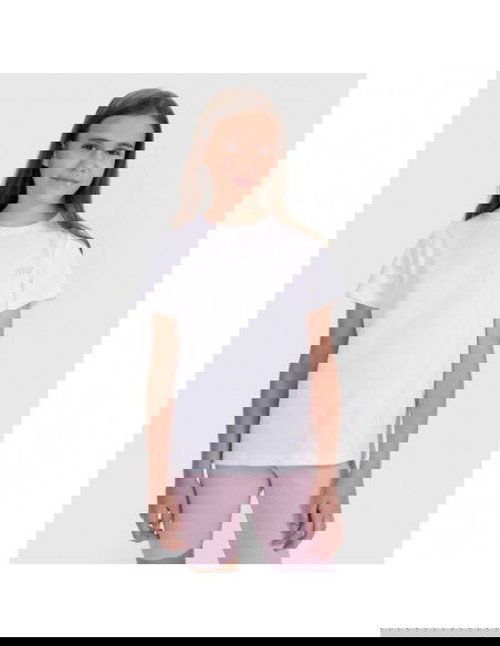 4F girls' T-shirt - comfort and freedom for everyday wear This oversized T-shirt for girls is the perfect everyday choice – it provides complete freedom of movement and comfort. Made of soft single jersey fabric , it's pleasant to the touch and fits well. Key features: Cut: oversize – loose and comfortable Material: 65% modal, 35% polyester – soft, breathable and durable Weight: 180 gsm – perfect for everyday use Neckline: round – classic, comfortable finish Dropped shoulder line: gives a modern look Solid colors: easy to combine with other items of clothing The T-shirt is perfect for school, for a walk, for activities and for relaxation – it is universal and practical. See more models in the Girls' T-shirts category.