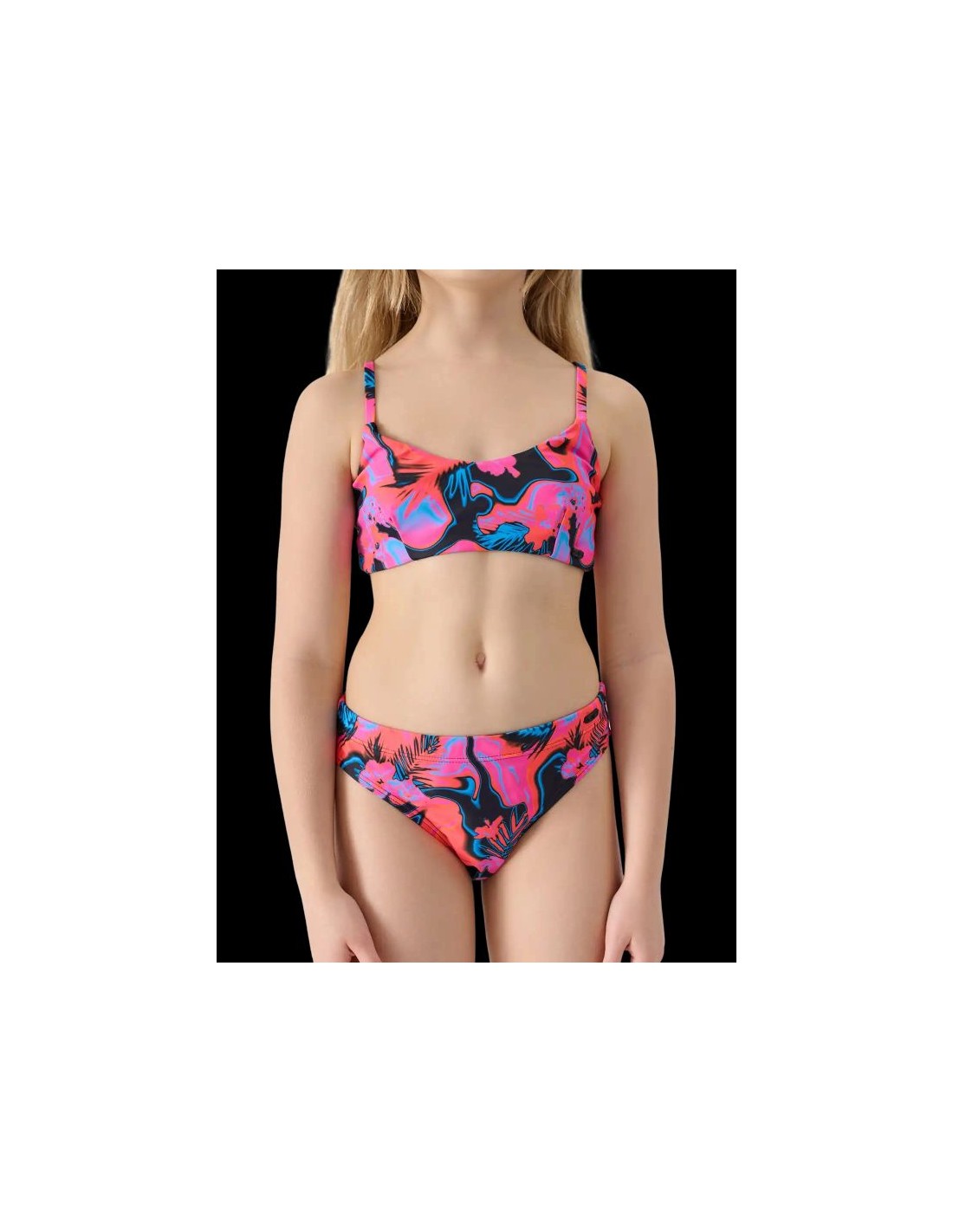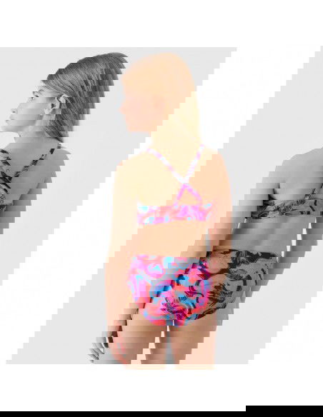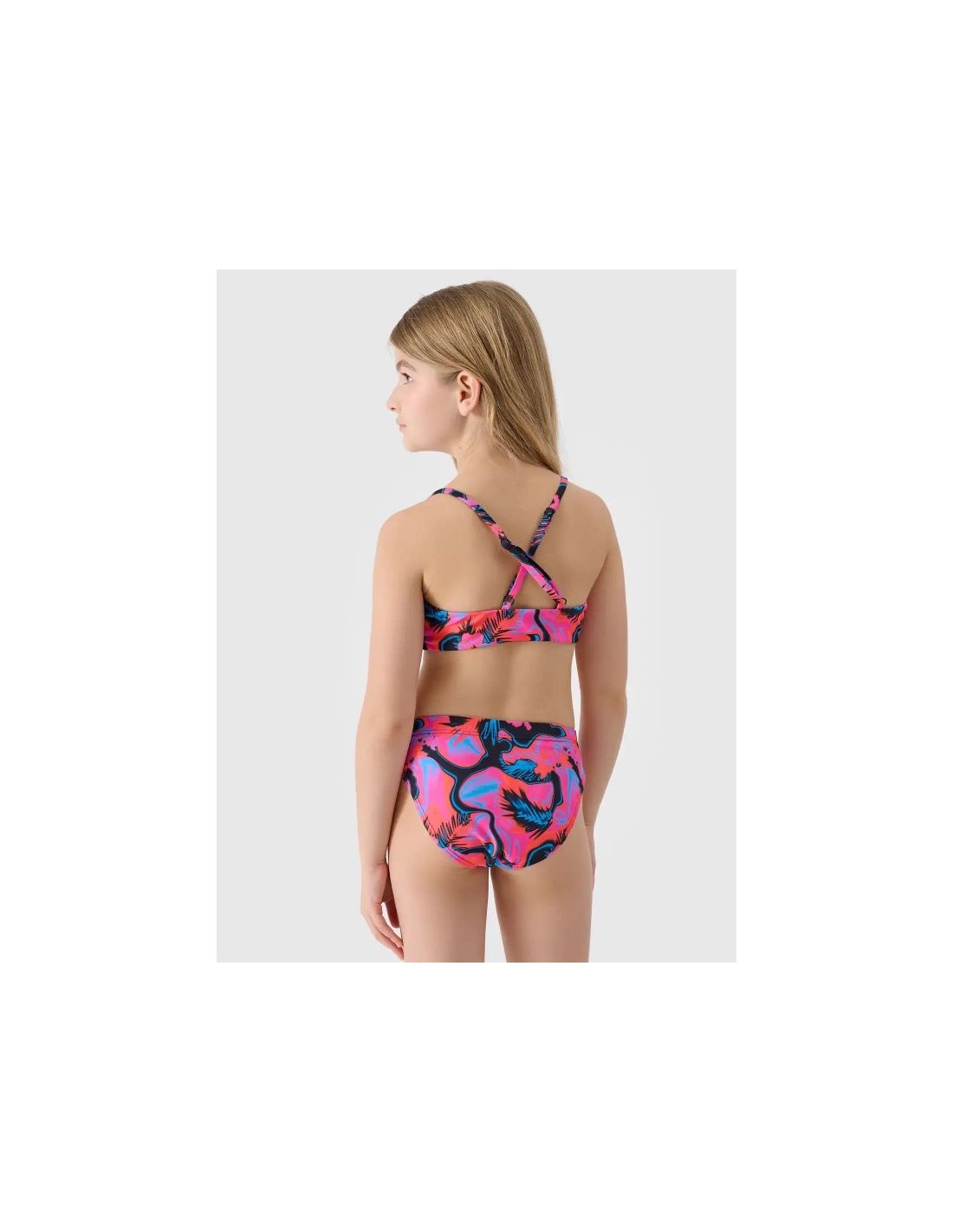 This girls' bikini set is a perfect choice for summer. It combines a fashionable look, comfort, and functionality, making it perfect for beach fun, swimming, or relaxing by the water. This two-piece swimsuit for girls was designed with active young women in mind. Stretchy fabric with elastane ensures a perfect fit and freedom of movement, while quick-drying fibers help effectively wick away moisture and maintain thermal comfort. The fashionable, colorful design and meticulous finishing make this set look stylish and stand out from other models. It's a perfect choice for girls who want to feel comfortable and confident during summer activities. 4F girls bikini set – product features: Size range: 122–164 Two-piece design – top + panties Stretch fabric with elastane (15%) – fit and comfort Quick-drying material – moisture wicking Hygienic lining – greater coverage and comfort Wide, non-adjustable straps Colorful print – attractive appearance This 4F girls' swimsuit combines quality, style, and comfort. It's perfect for both the pool and vacations.